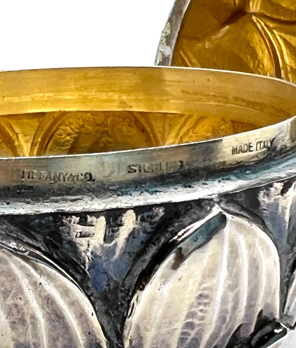 LOT 18 - Sterling Silver Tiffany Artichoke Trinket Box that is made in Italy. It measures 3 1/2 inches tall and 3 inches wide. It has a gold tone finish on the inside. It weighs 186 grams and is not weighted. It is marked Tiffany Sterling Italy. This item is part of the David-Pleydell-Bouverie Estate at Bouverie Ranch in Glen Ellen. This item can be viewed at our Green + Cate Showroom in Sebastopol from December 2nd -December 5th between the hours of 9am-5pm. For the benefit of the Bouverie Preserve of Audubon Canyon Ranch.