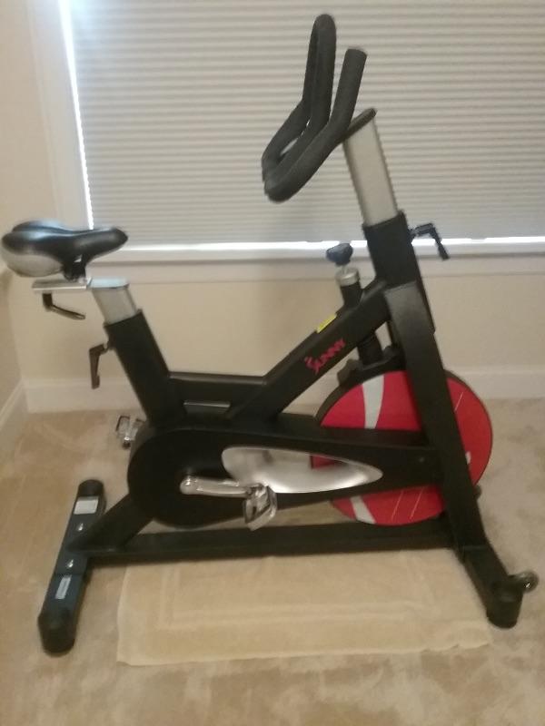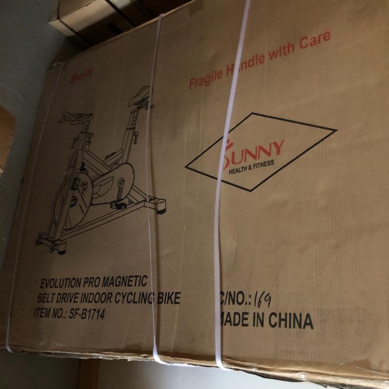 Get in shape this winter with this NIB Sunny SF-B1714 Evolution Pro Magnetic belt drive indoor bicycle. The assembled bike is one the owner already has just like it. This one is still in the box and needs assembly. Bring help item is substantial. You will have to assemble this one.