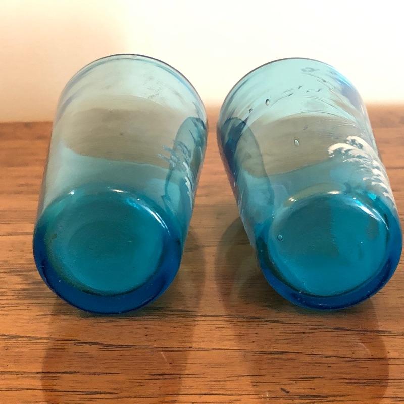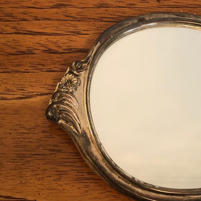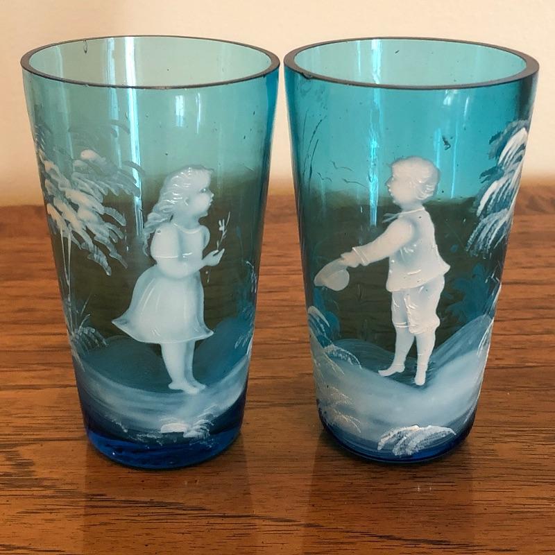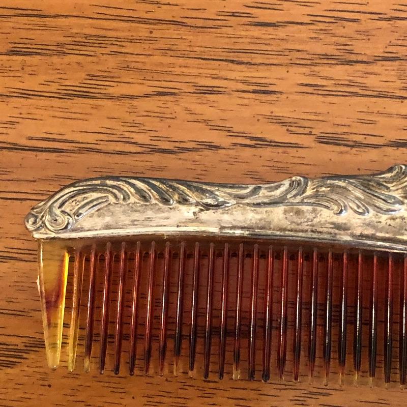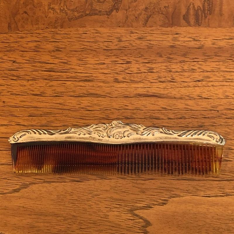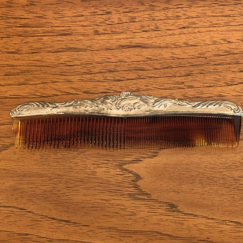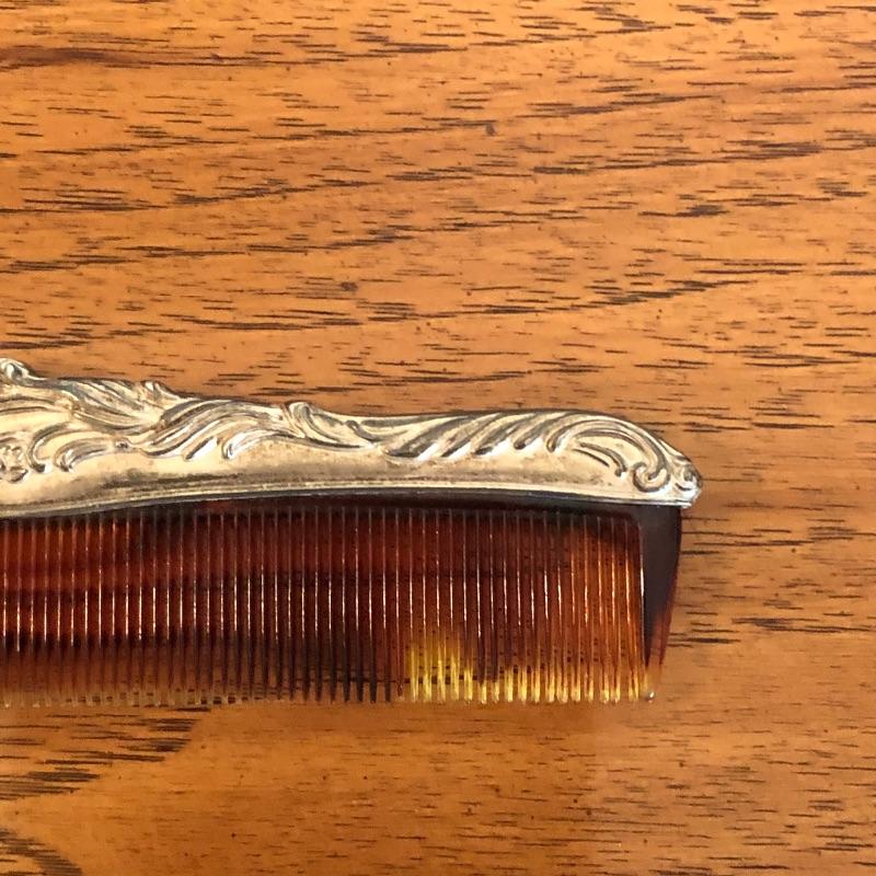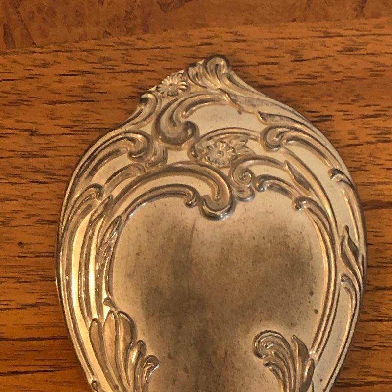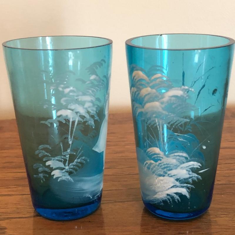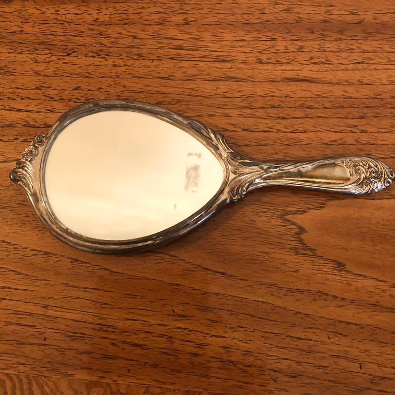 Unique vanity items and a pair of gorgeous small blue decorative etched glasses. The silver plate mirror, brush and comb are heavy. The wooden brush has a nick in the shoe horn part of the handle see photos.