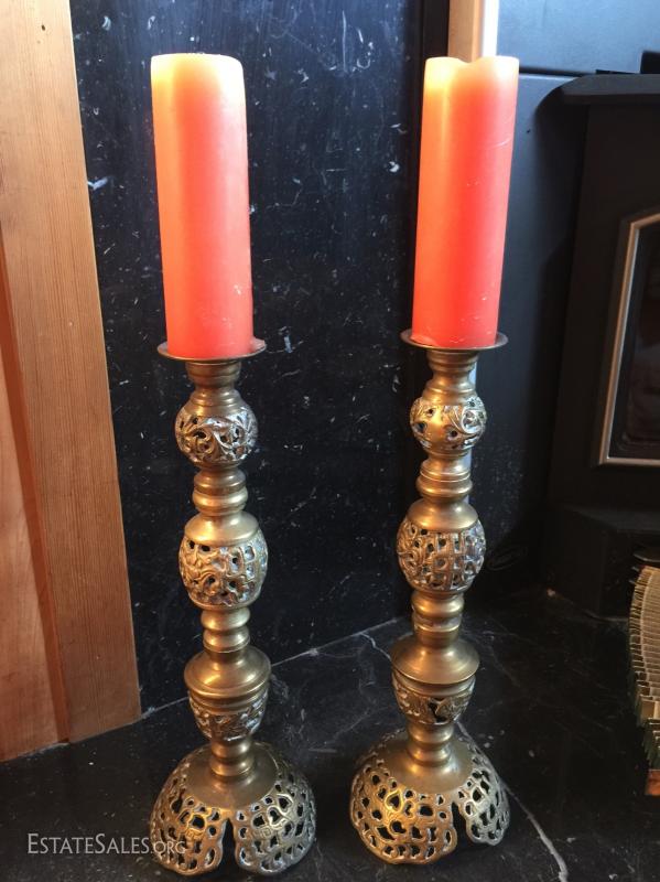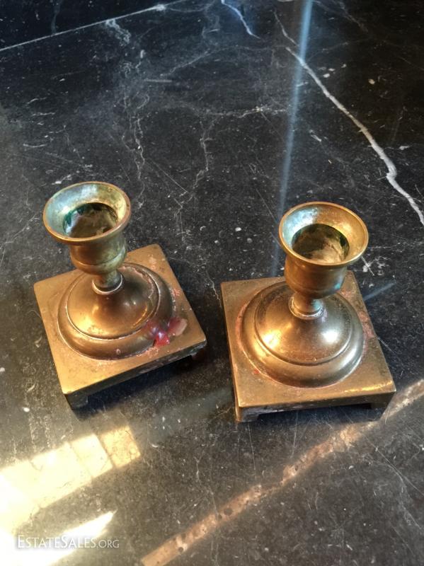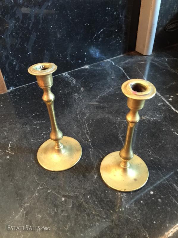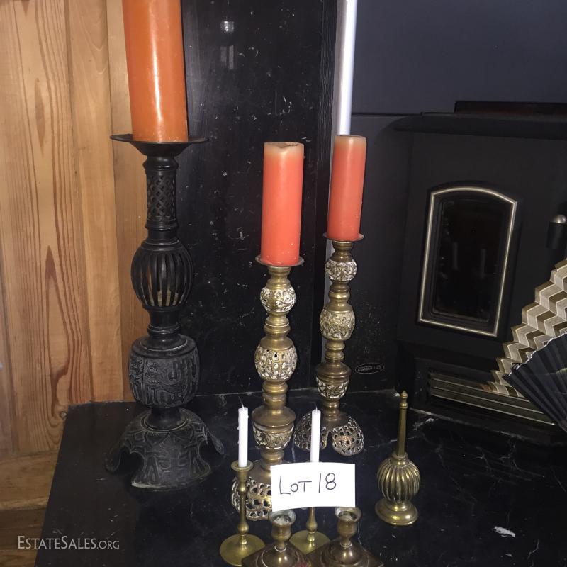 Brass candleholders and decorative pieces. Various styles. See photos for details. Sold as is.