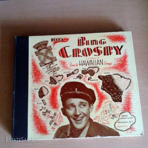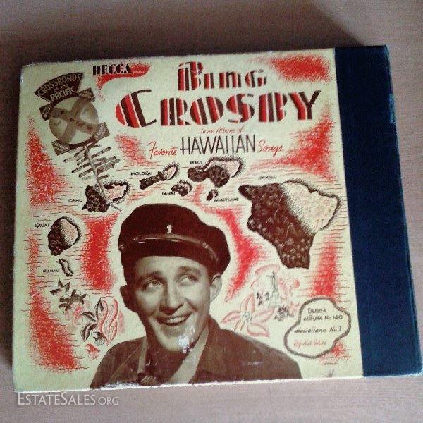 Everybody loves this velvet-voiced crooner synonymous with Christmas music and movie musicals. This lot features 18 individual single-song albums, all on various DECCA labels: 6 DECCA blue label (Favorite Hawaiian Songs); 3 different DECCA black labels, with one being the immensely popular "Personality Series" (8 albums). Included in this collection is the best-selling single of all time, White Christmas. All albums are in pristine, near mint condition, kept safe, secure and dust-free in their finely engineered cases. The exteriors of the record books show minimal signs of wear and tear; scuff marks and slight discoloration of the vinyl covers in spots is the worst of it. This lot could be yours for a song!! Reminder: out-of-state auction winners are the only ones with S&H/alternate payment options.
