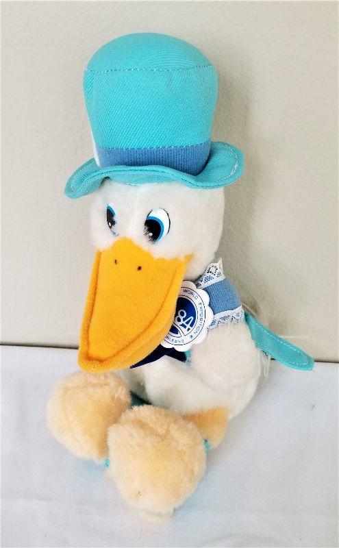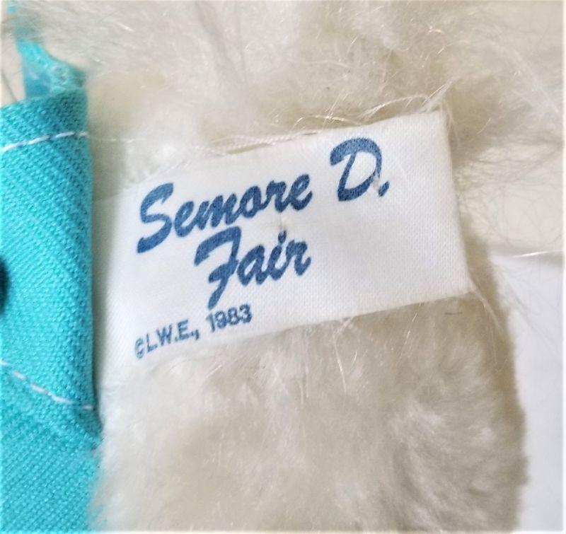 Very clean, nice seated version of the 1984 World's Fair mascot "Semore D. Fair" with tags. 10" tall. Has sash and button.