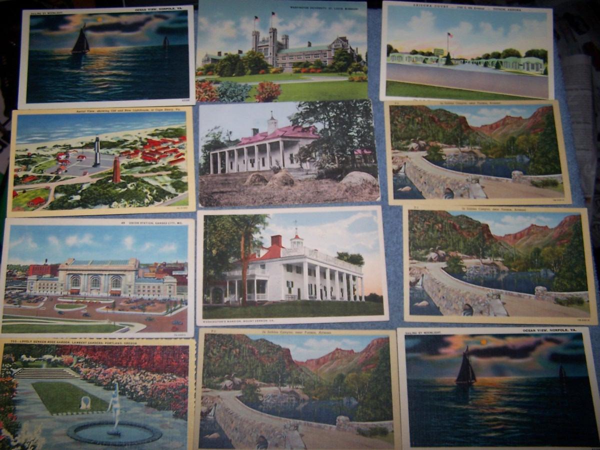 GREAT VINTAGE US POSTCARDS.... SOME LIGHT WEAR. SOME WRITING....