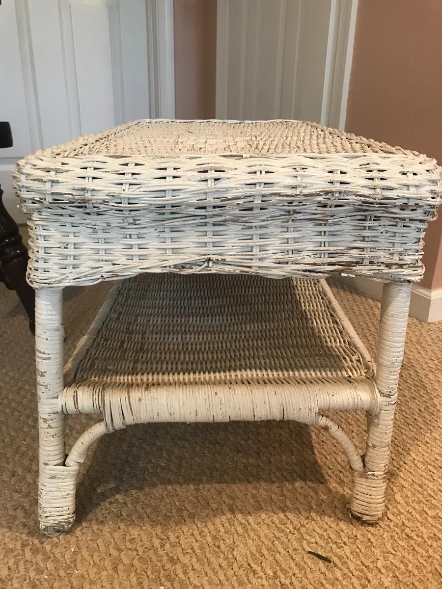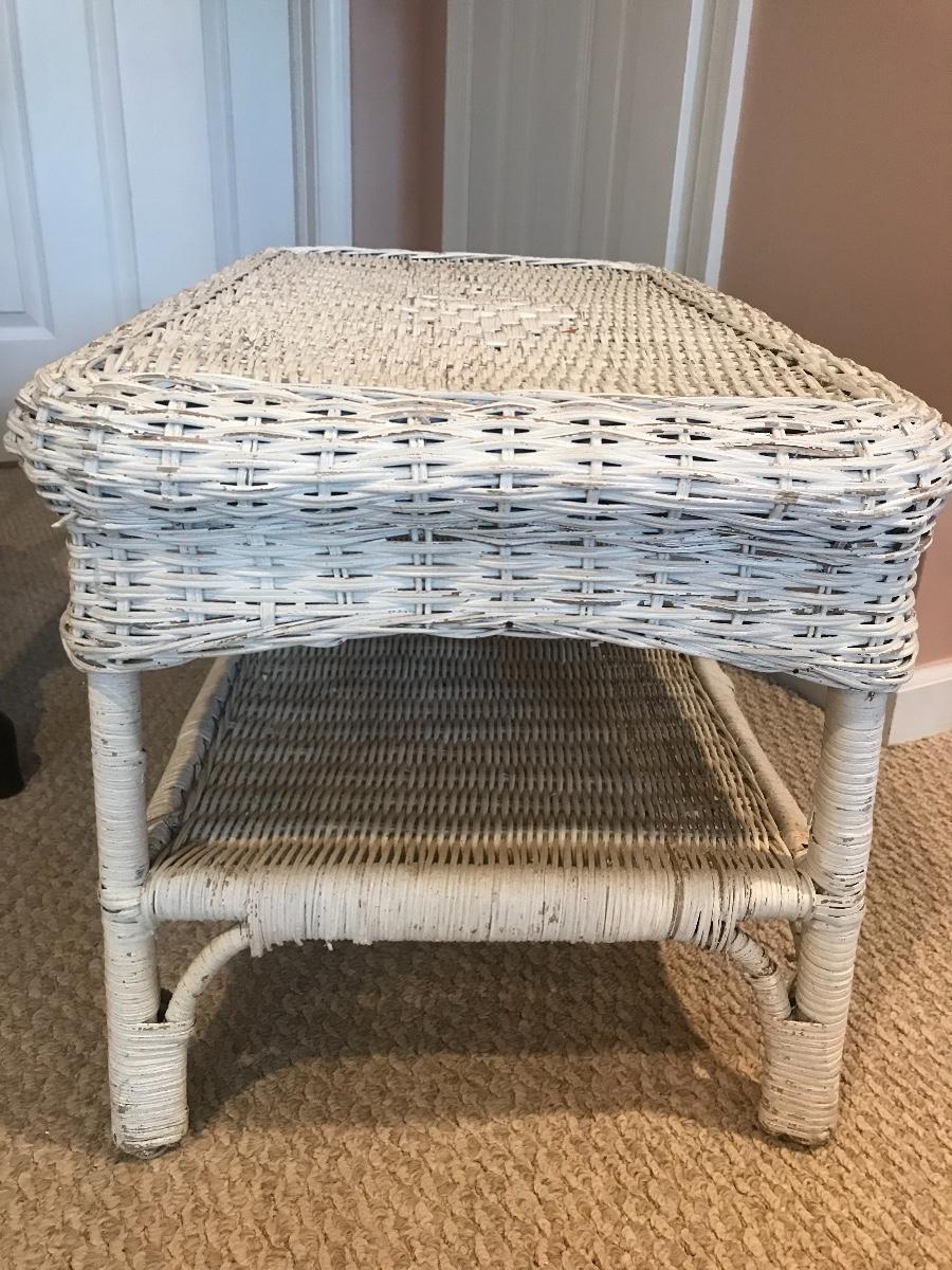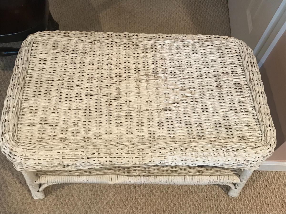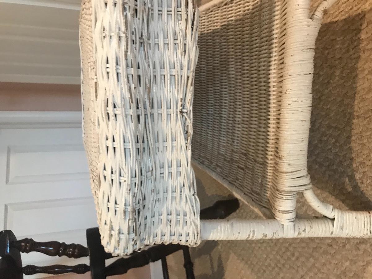 Two faux flower arrangements, a vintage wicker table, and a patriotic banner. Please see all pictures as they are the best representation of the items. The pictures show condition, measurements if taken, and what is included in the lot. Due to the large amount that we photograph and the time frame, we are not always able to take measurements. All items unless noted, are pre-owned and have been used. If you purchased furniture, you must bring help. We do not allow one person to carry large furniture out on their own. Bring help, tools and a truck for the safety of our client’s homes, and your personal safety. Company policy. Thank you.