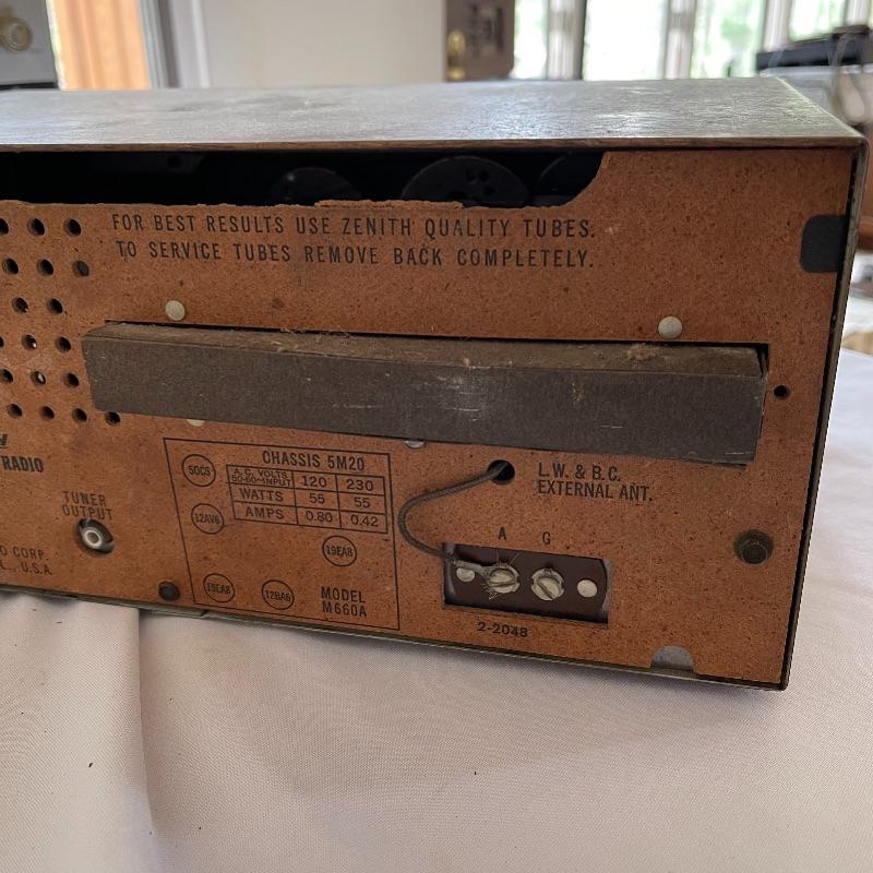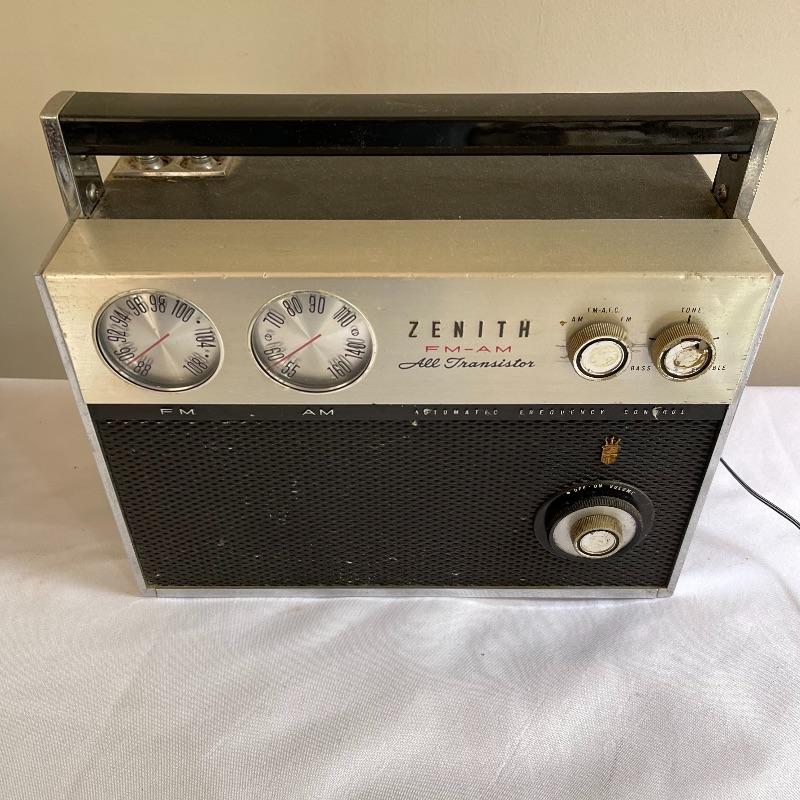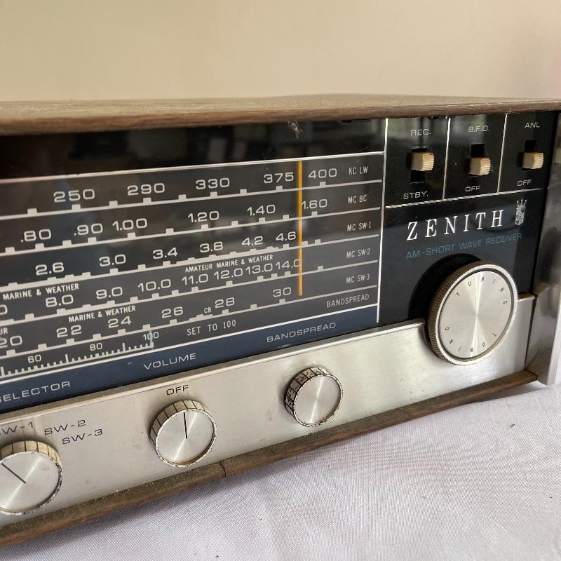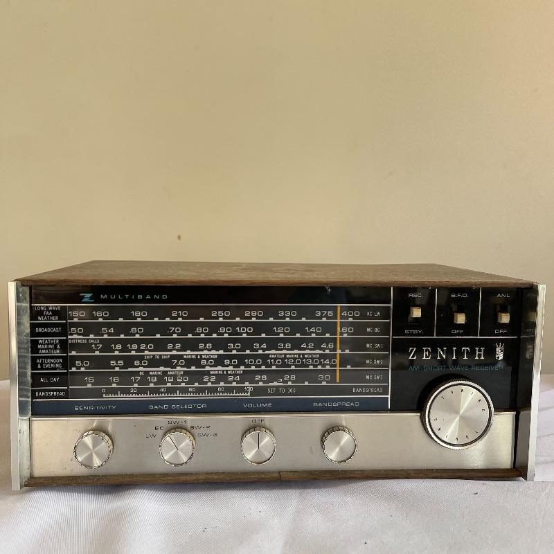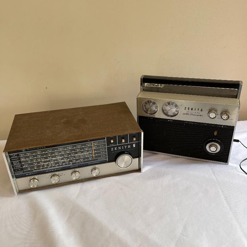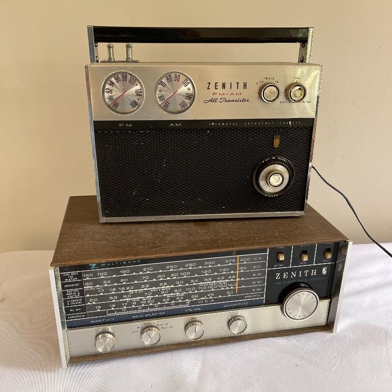 This lot includes a Zenith AM - Multi-Band 660A Short Wave Receiver radio and a FM-AM All Transistor radio. The short wave receiver powered on when plugged in and the transistor radio did not visibly power on.