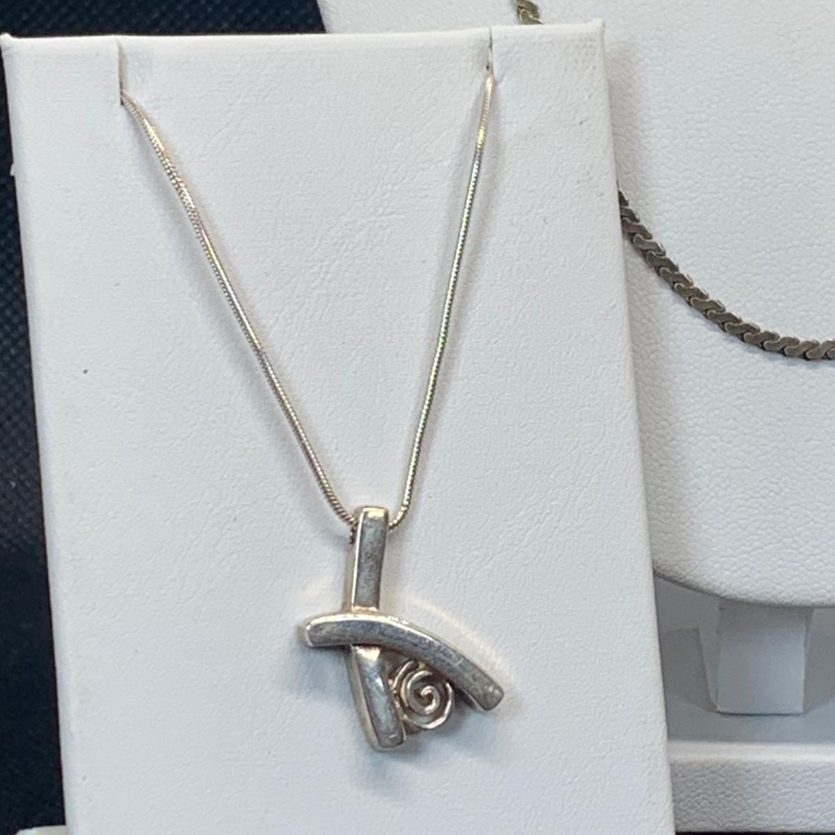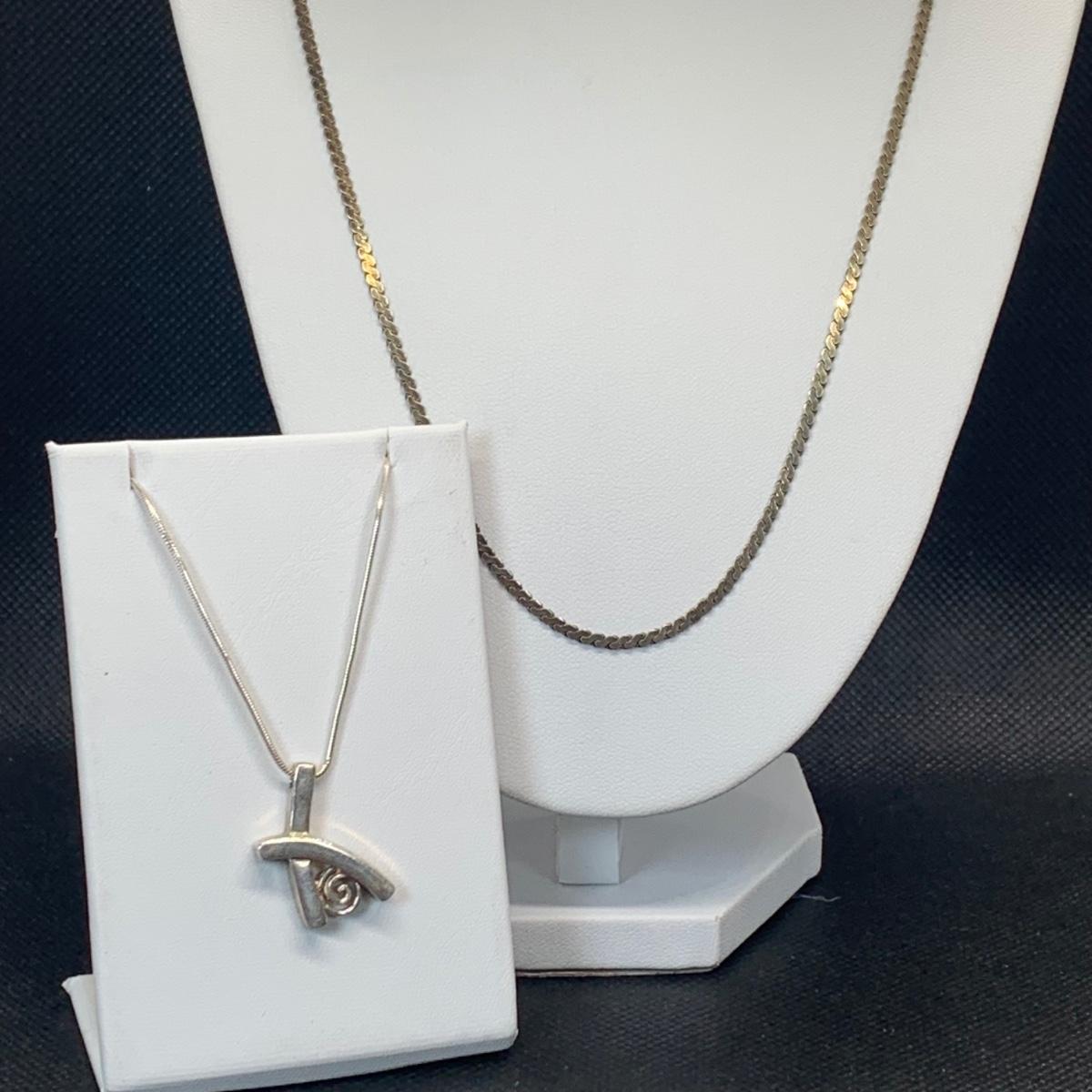 Lot 180: Sterling Silver Necklace w/Pendant & Sterling Silver Chain: 18"
