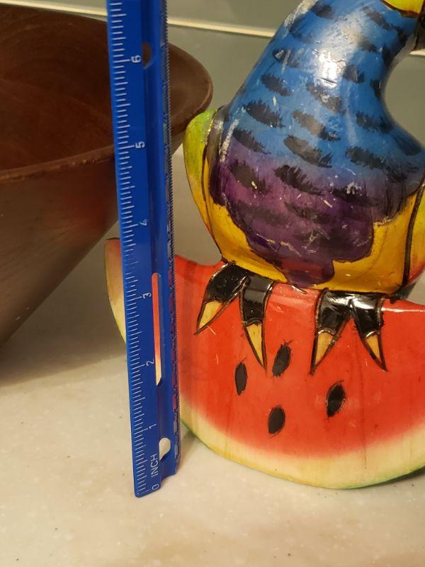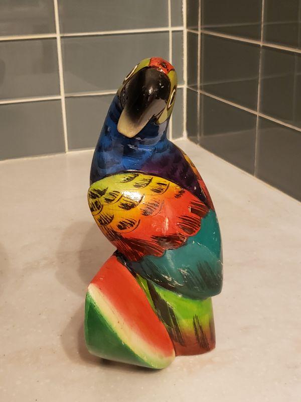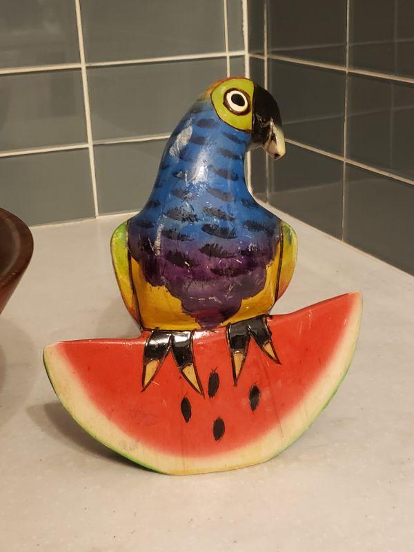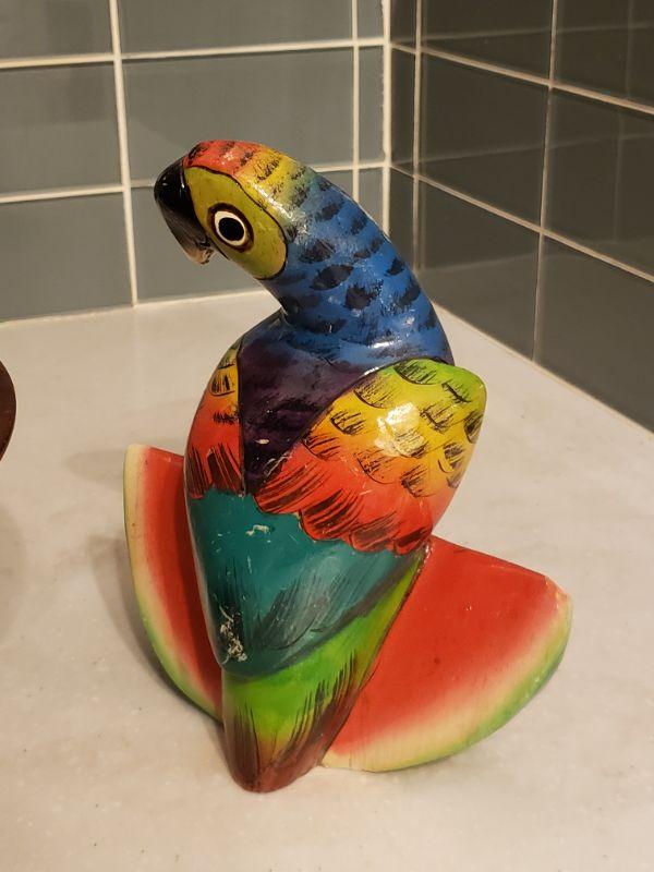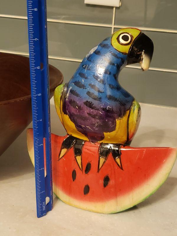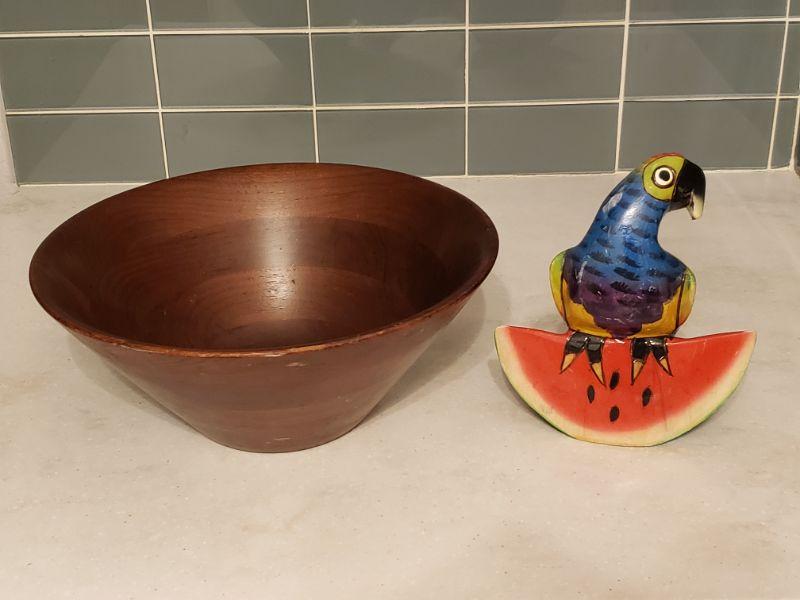 Lot 180: Large Wood Salad Bowl and Wood Parrot Kitchen Deco