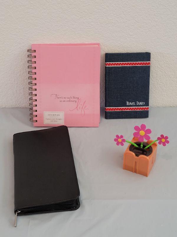 Lot 180: Journal, Address Book, Passport Travel Documents Case and Solar Dancing Flowers
