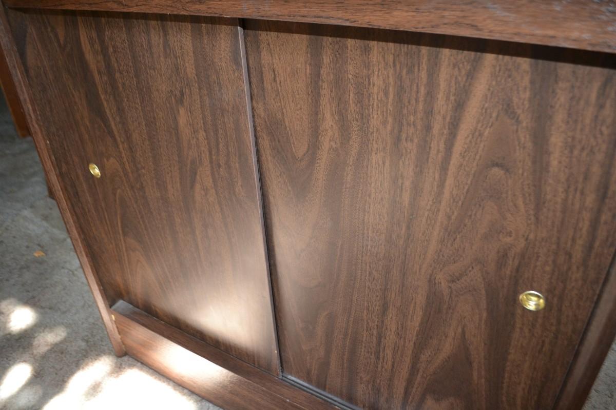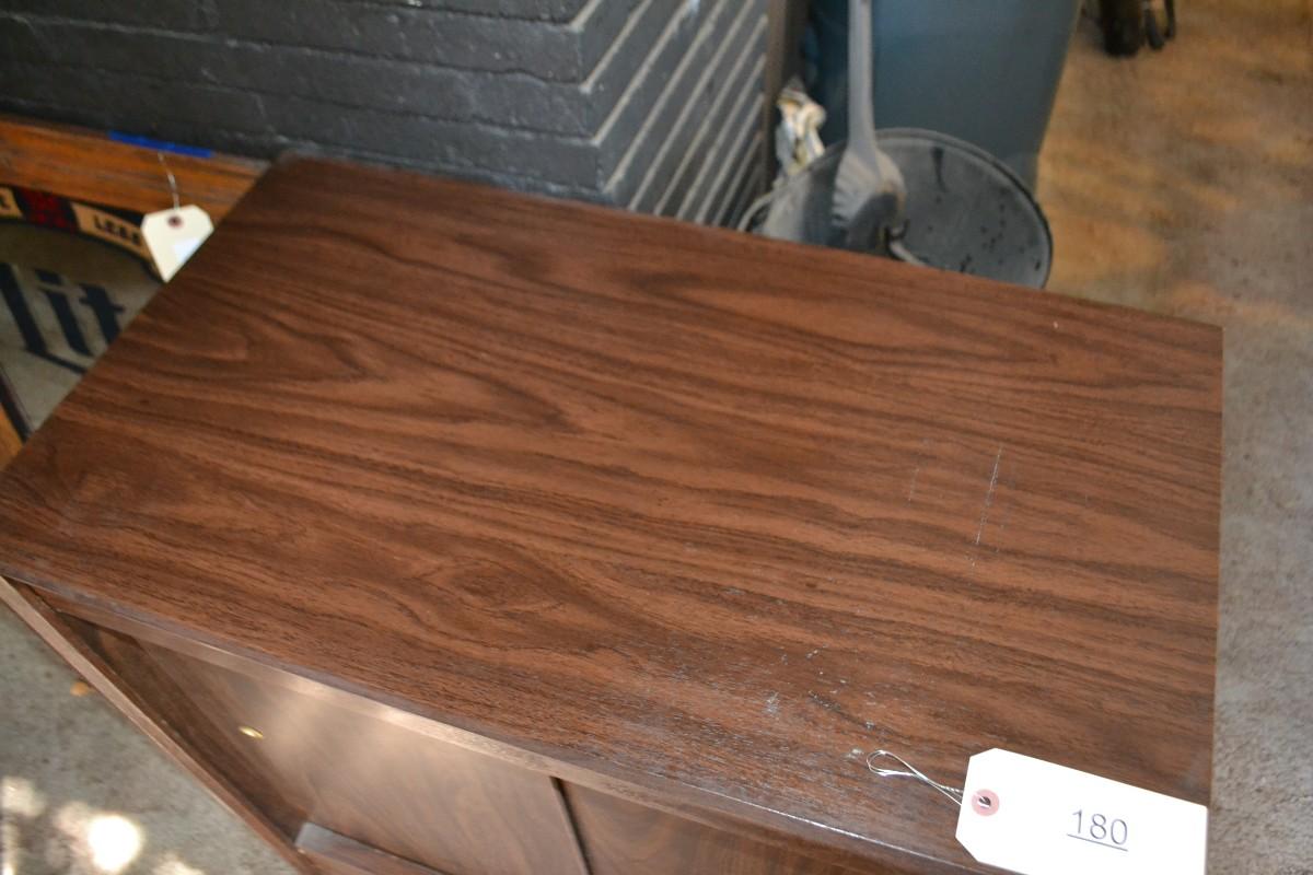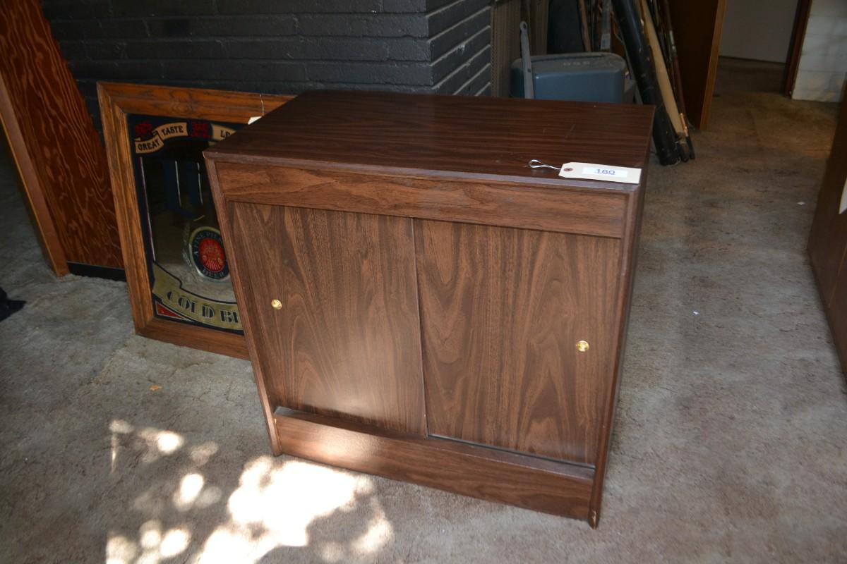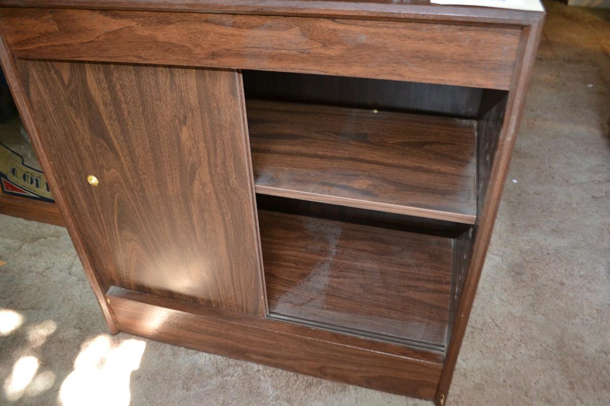 LOT 180 vintage press sawdust cabinet was sliding doors