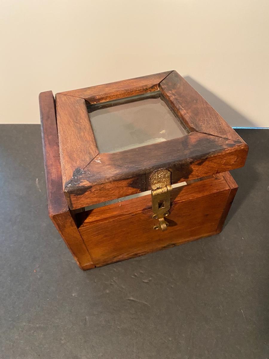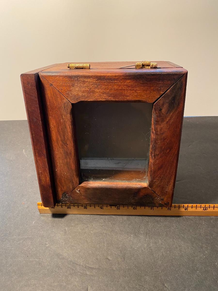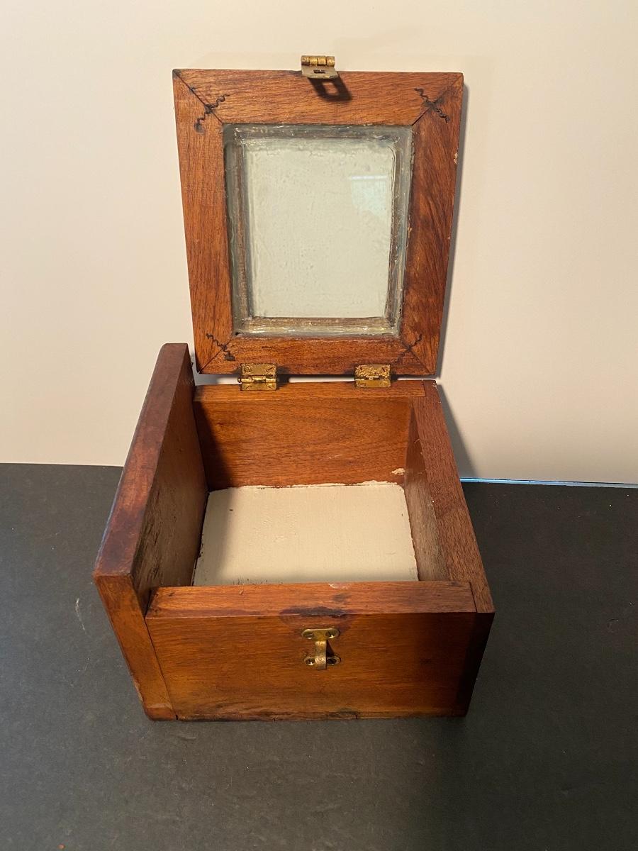 Gorgeous Primitive Box that might be used on dresser with candle on top, reproduction Sears Catalog, and wood carved rooster. Please see pictures as they are the best representation of the item, the condition of the item, and the size of the item.