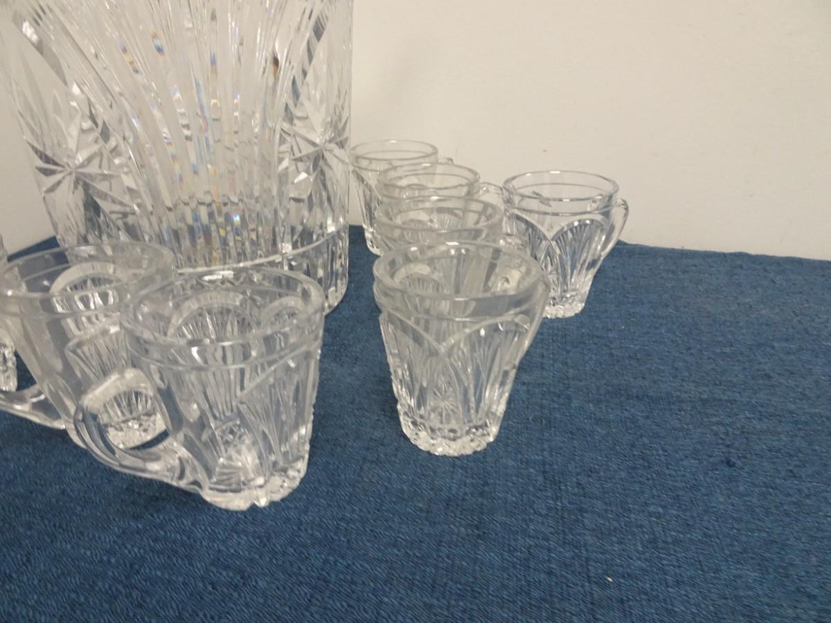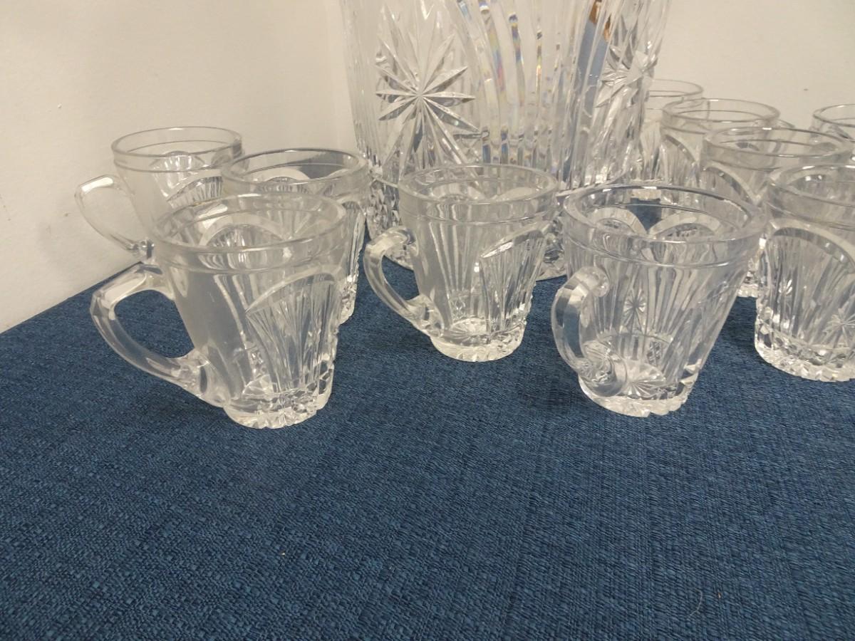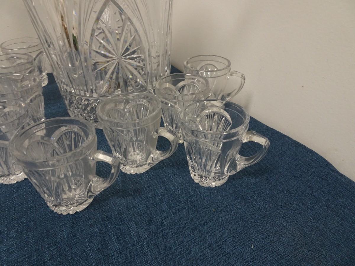 LOT 180 CRYSTAL LIDDED PUNCH BOWL WITH LADLE AND 8 CUPS
