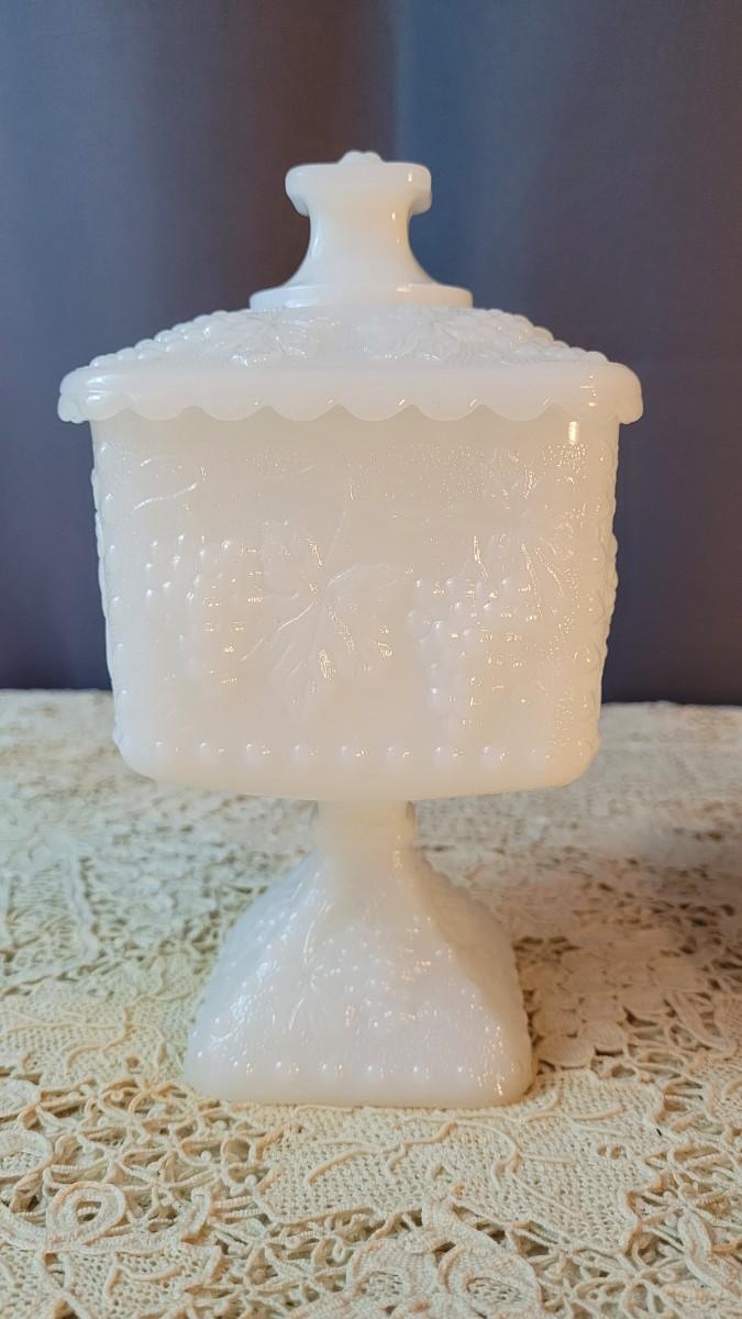 Lot 180: (2) Milk Glass Grape Design Candy Dishes