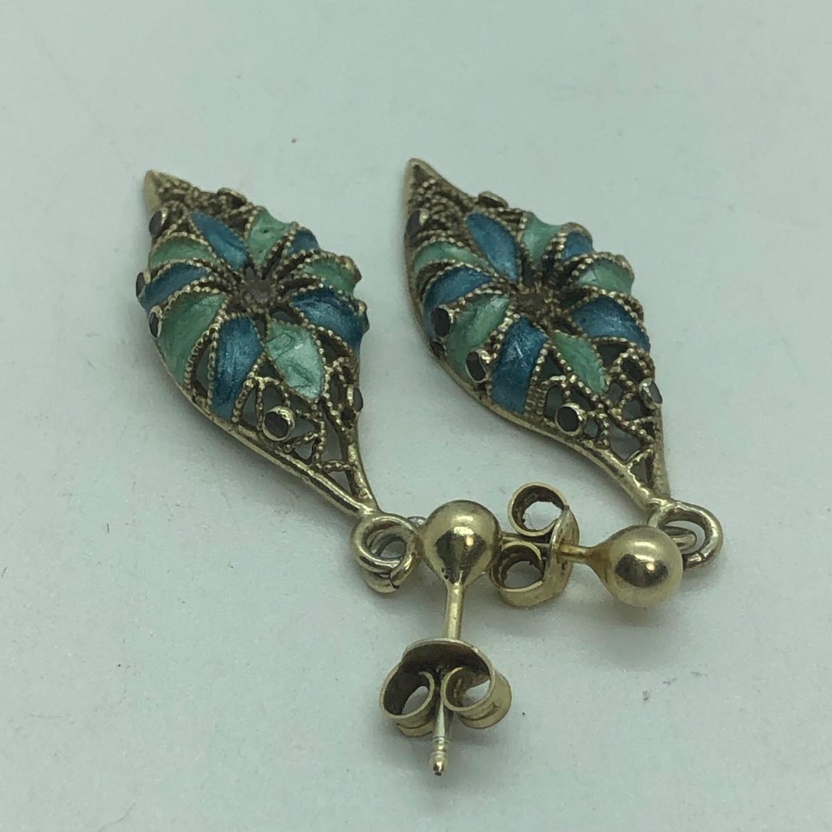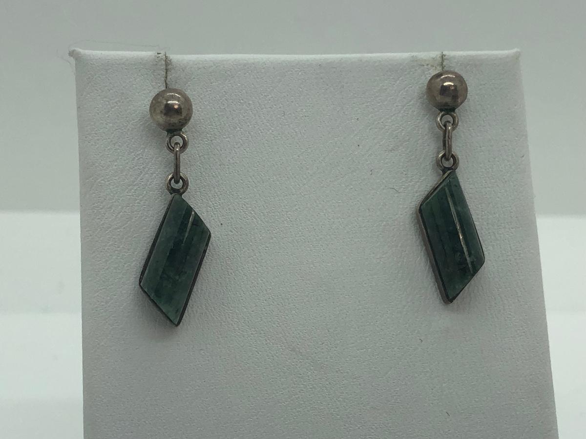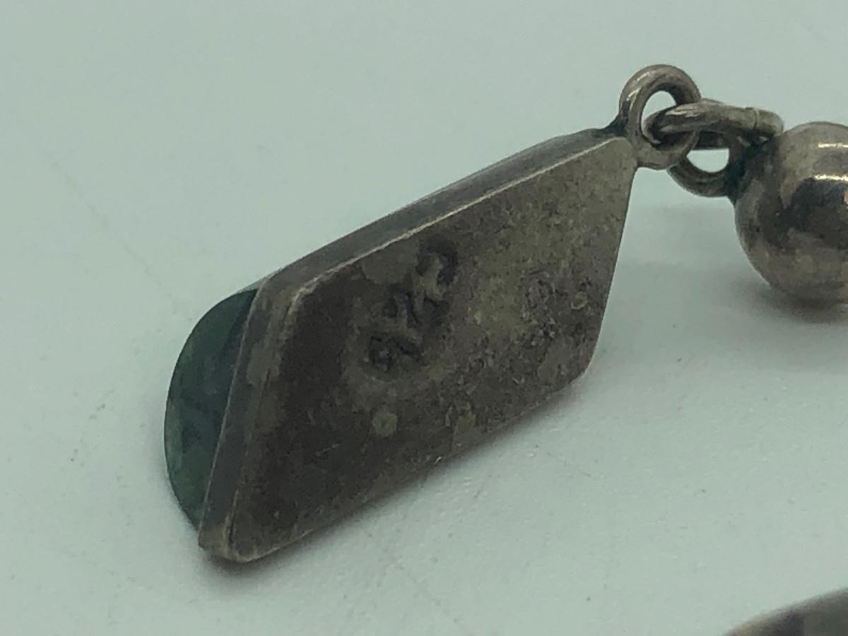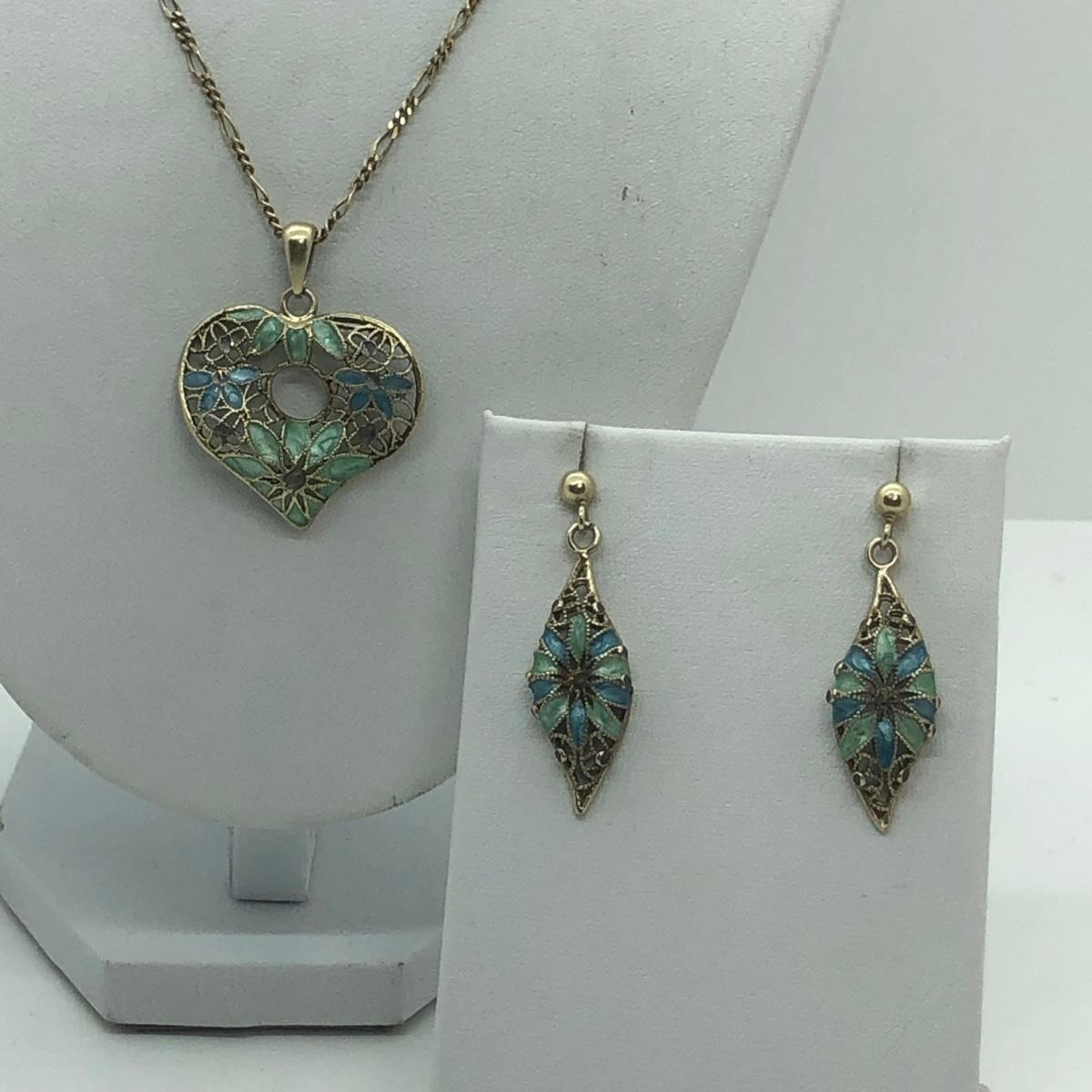 A matching necklace and earring set and another pair of earrings, also sterling silver.