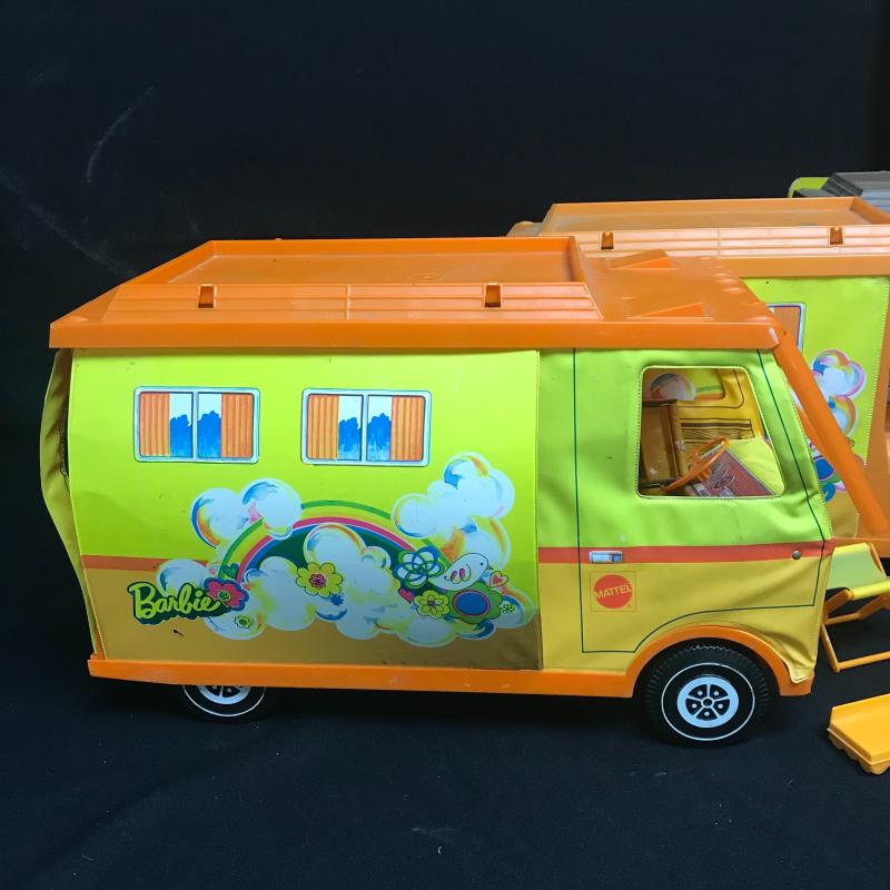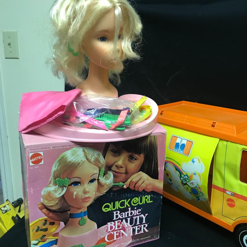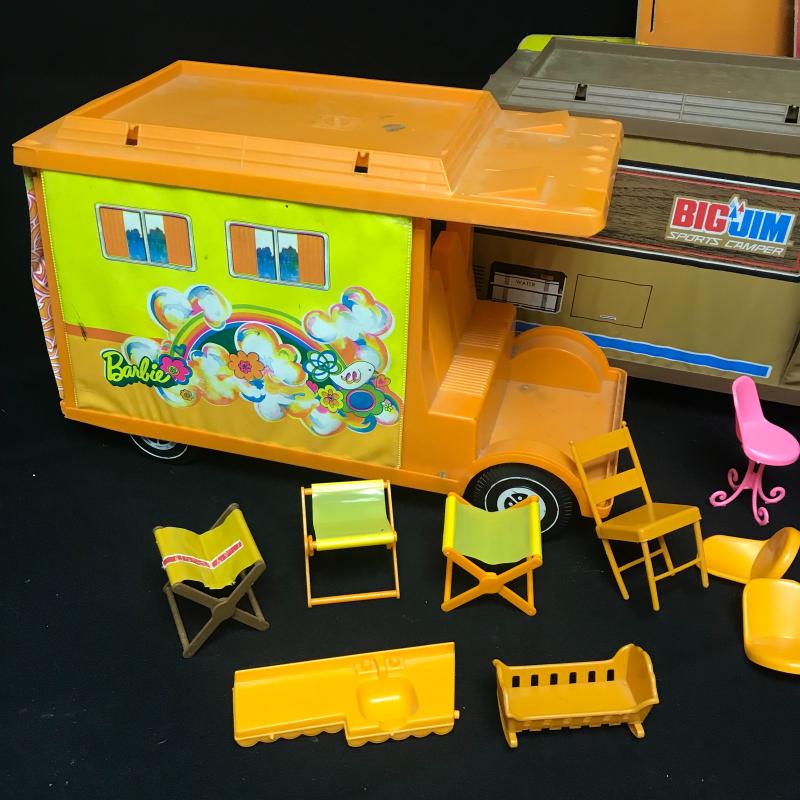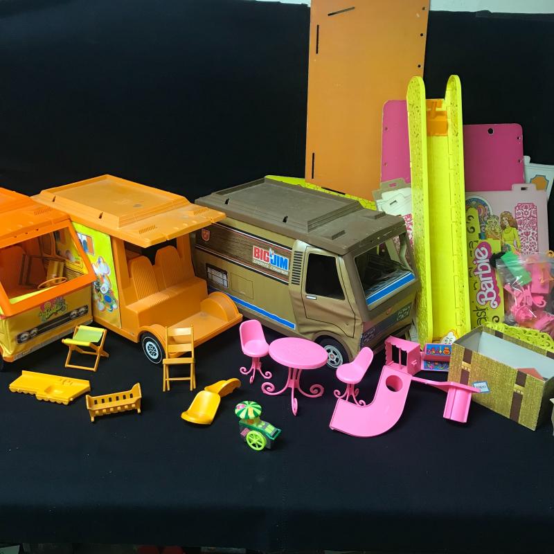 Barbie Beauty Center, Three campers including Big Jim. Barbie Fashion Plaza with Accessories. These items have been played with and are clearly missing pieces but what is here is in good condition. We didn't set up the plaza so not sure it can be fully assembled. Local pick up only.