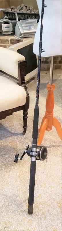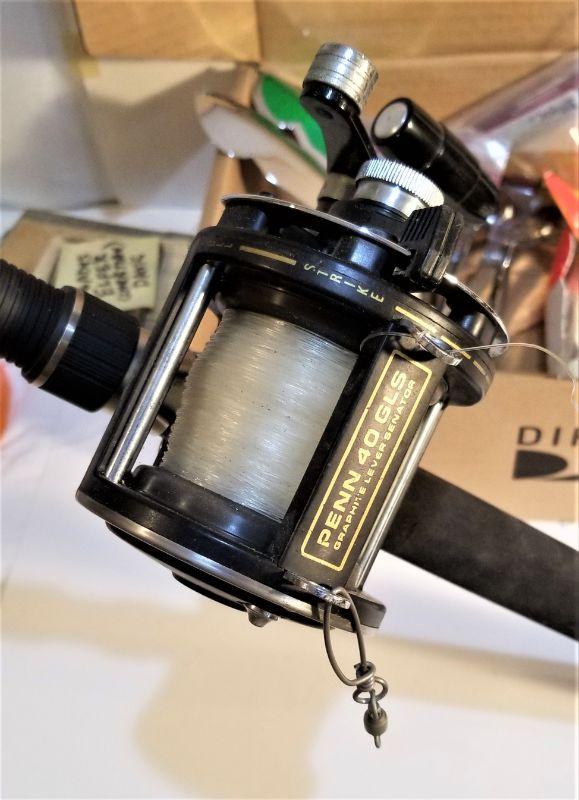 This rod measures 7 feet long and features a Penn 40 GLS Reel - Graphite Lever Senator. Used for Big Game/Deep sea fishing. Comes with box of Salt Water lures (big ones) - there are approximately 15 in the box. You get everything you see here.
