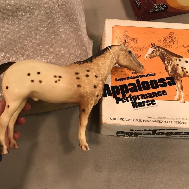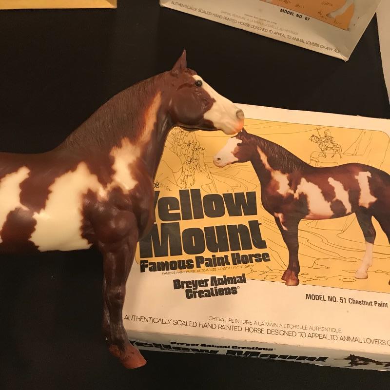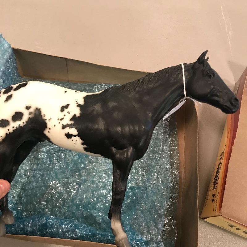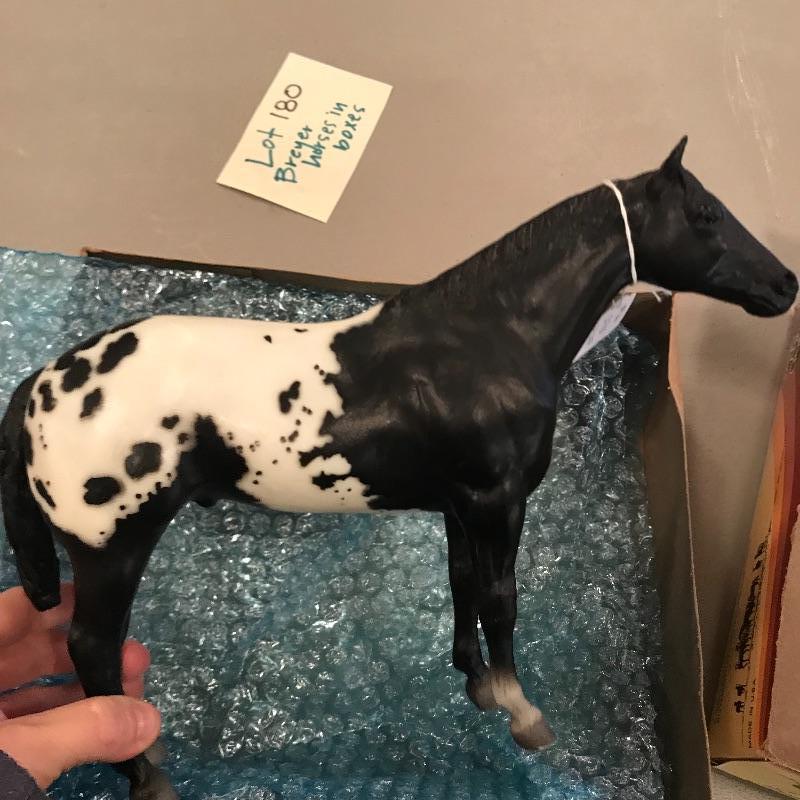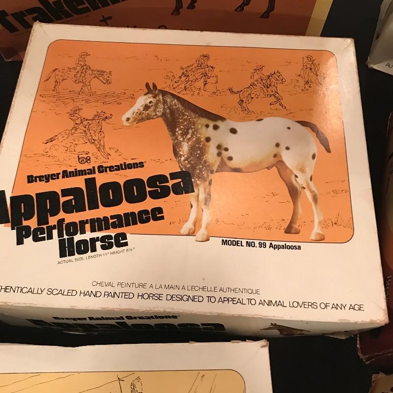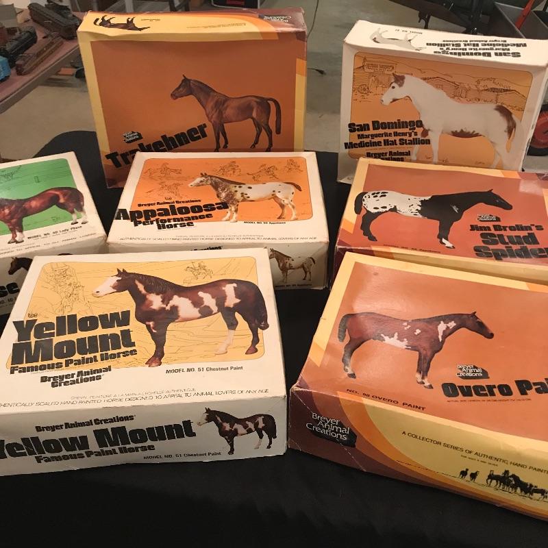 Lot includes seven Bryer horses with original boxes, including Trakehner, Lady Phase, Yellow Mount, San Domingo, Overo Paint, Stud Spider, and Appaloosa Performance Horse. All seem to be in excellent condition. See pics. Shipping available.