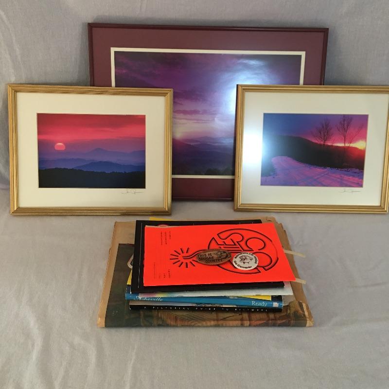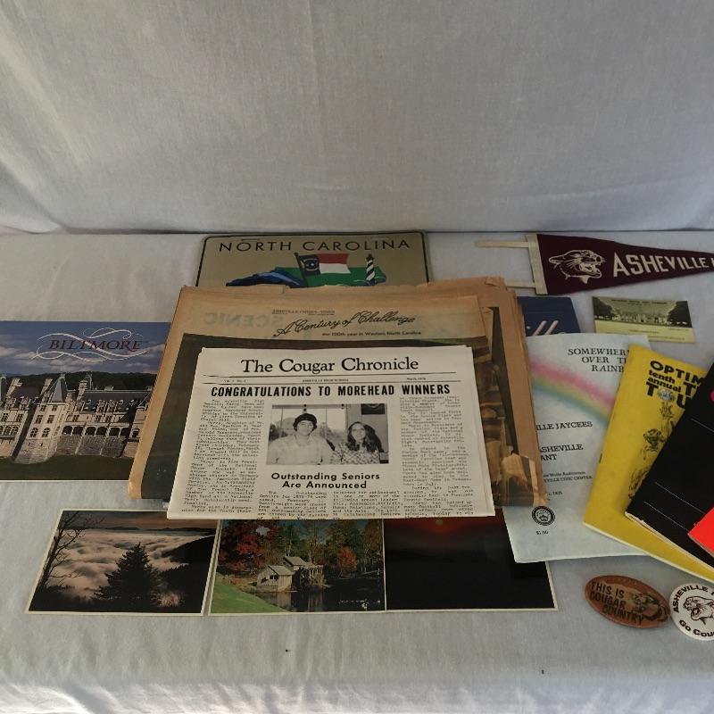 Carolina collection includes three signed, framed and matted photos, Biltmore book, Asheville book, one hundredth year Asheville Citizen Times, Asheville High pennant and more.