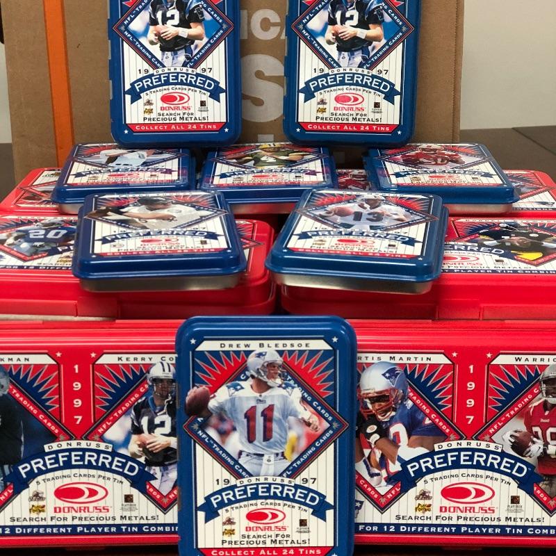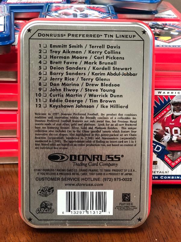 whew say that 10 times fadt! These 18 red and silver cases, as well as 13 smaller blue and silver cases will pair perfectly with your current football card collection or one our football collector card lots available in this sale. The front of each tin is like a collector card in and of it's self. Who says functional can't come with good looks?