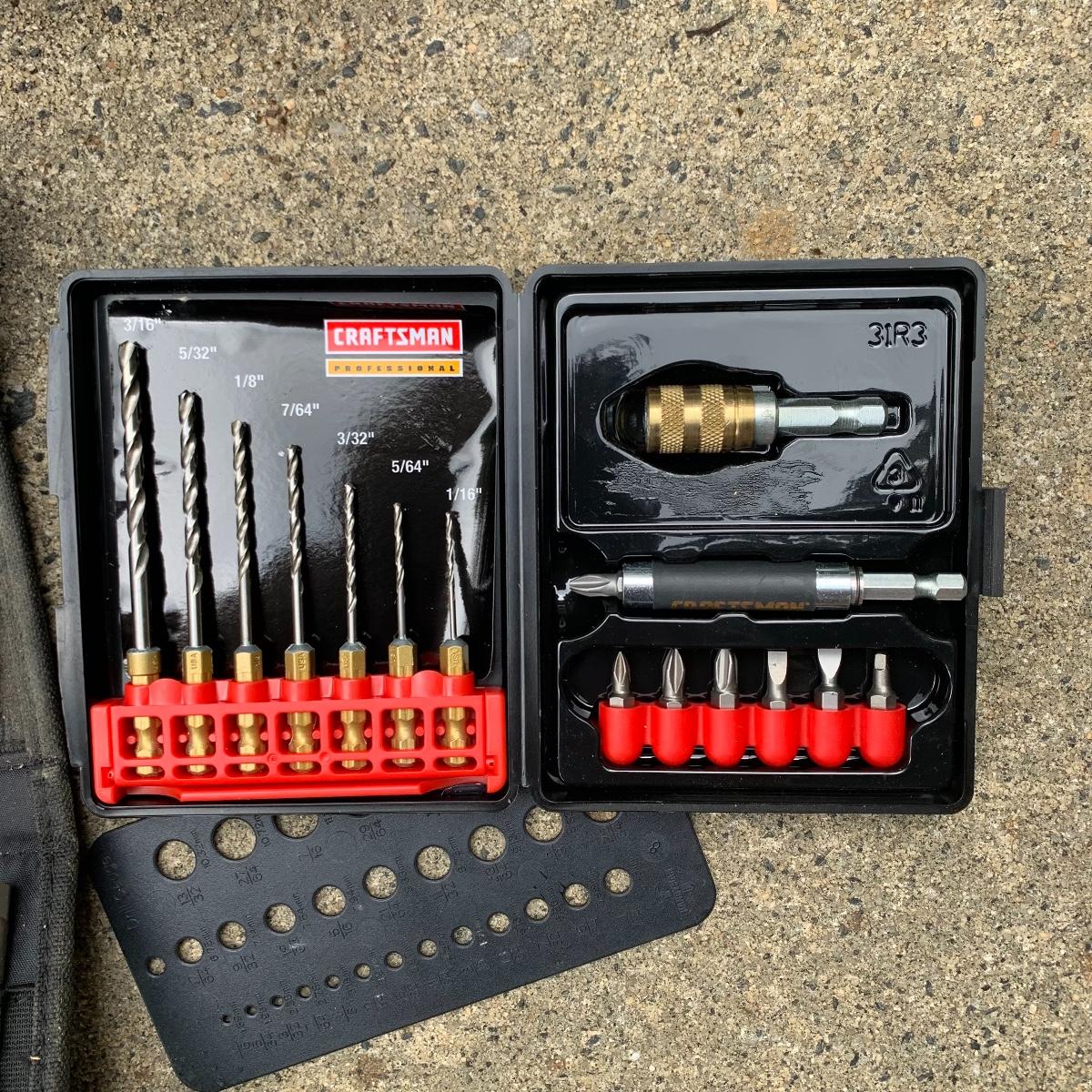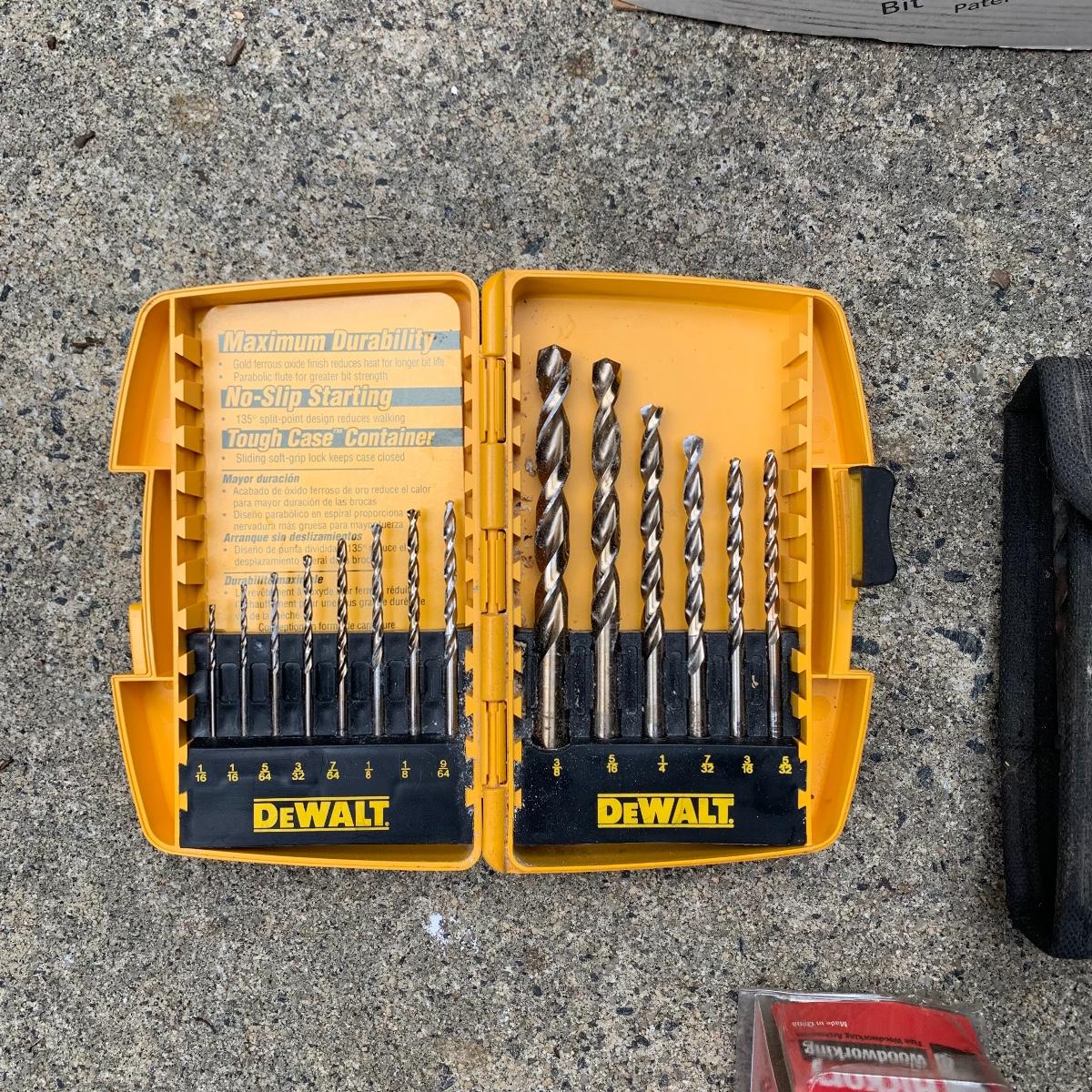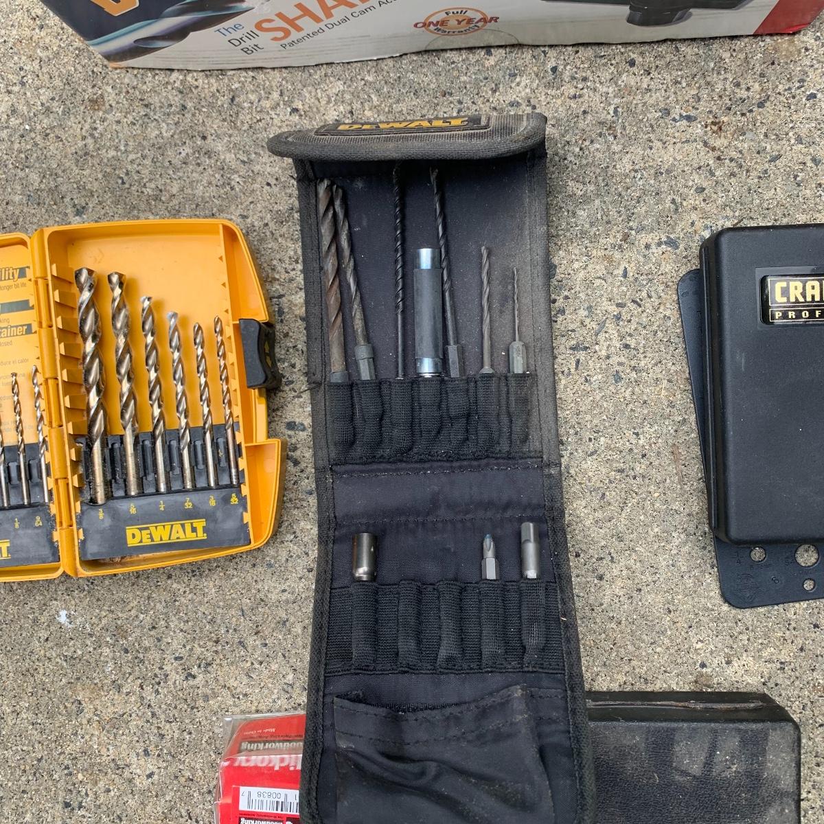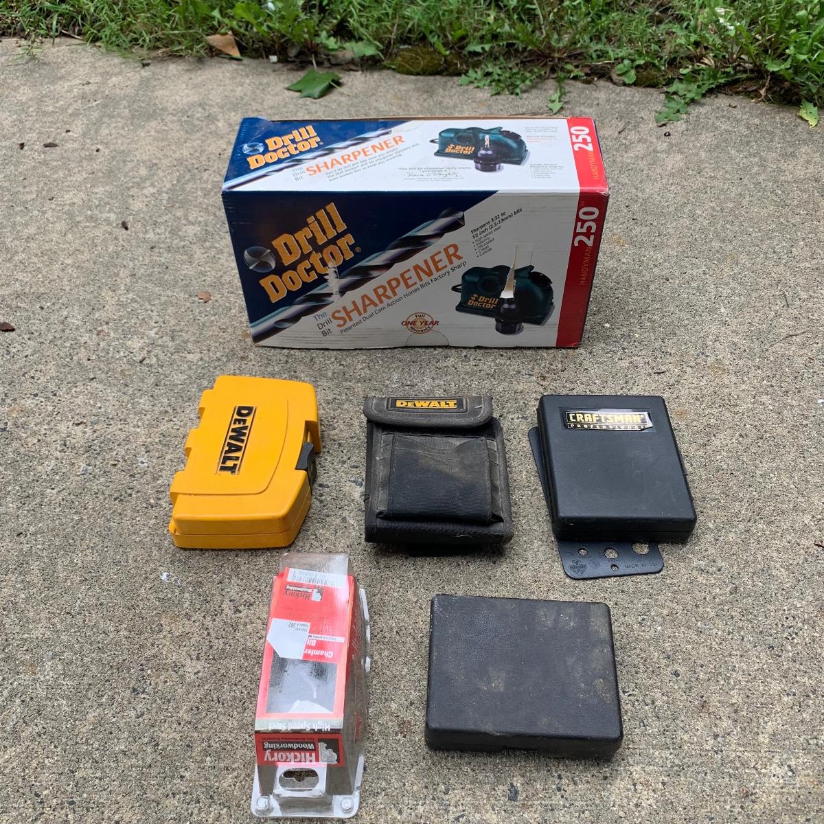 Now that dream can be a reality. This lot includes the Drill Dr bit sharpener and it’s new in its original box. Also included are several bit sets including a newer complete Dewalt set. This lot also includes a new router bit. Local pickup only.
