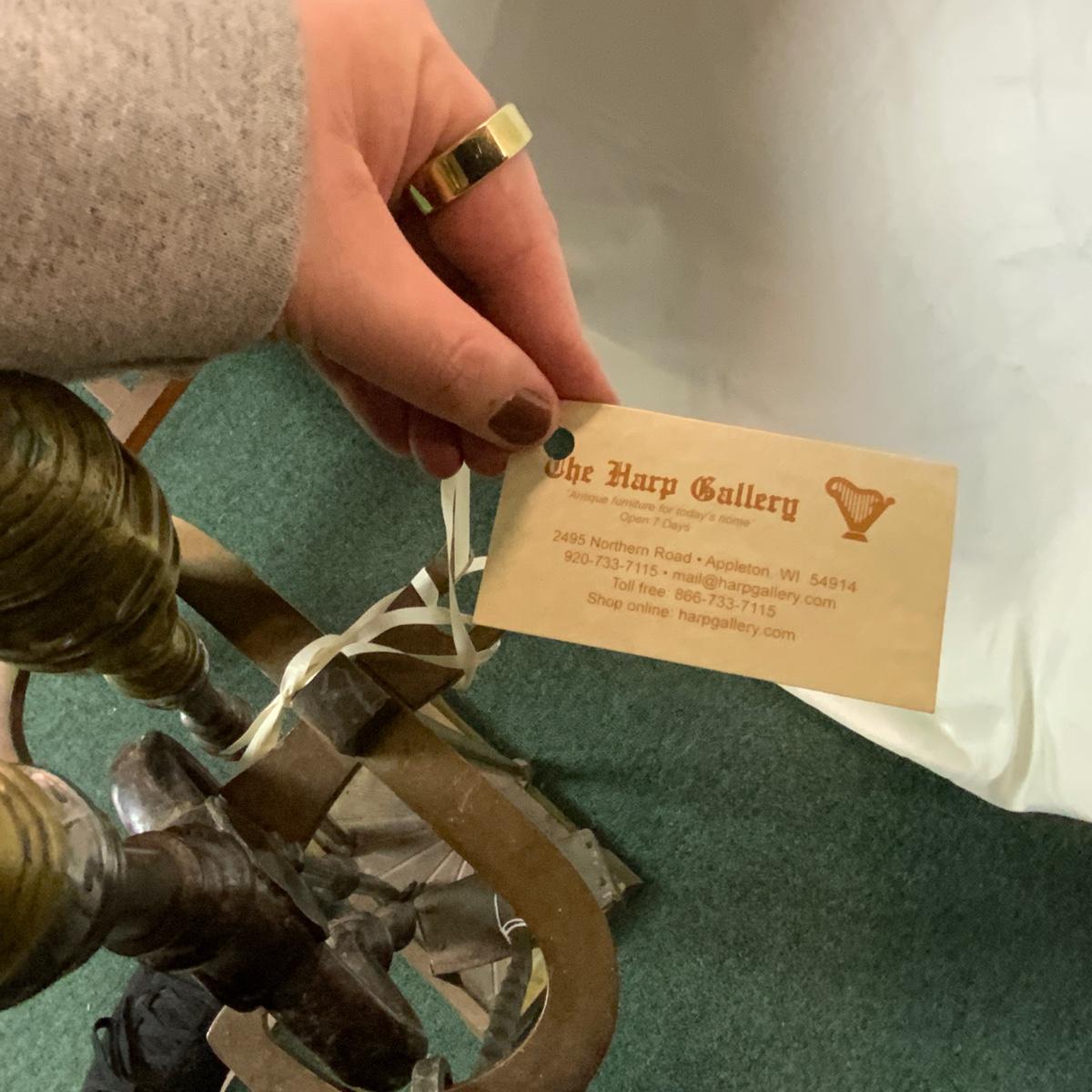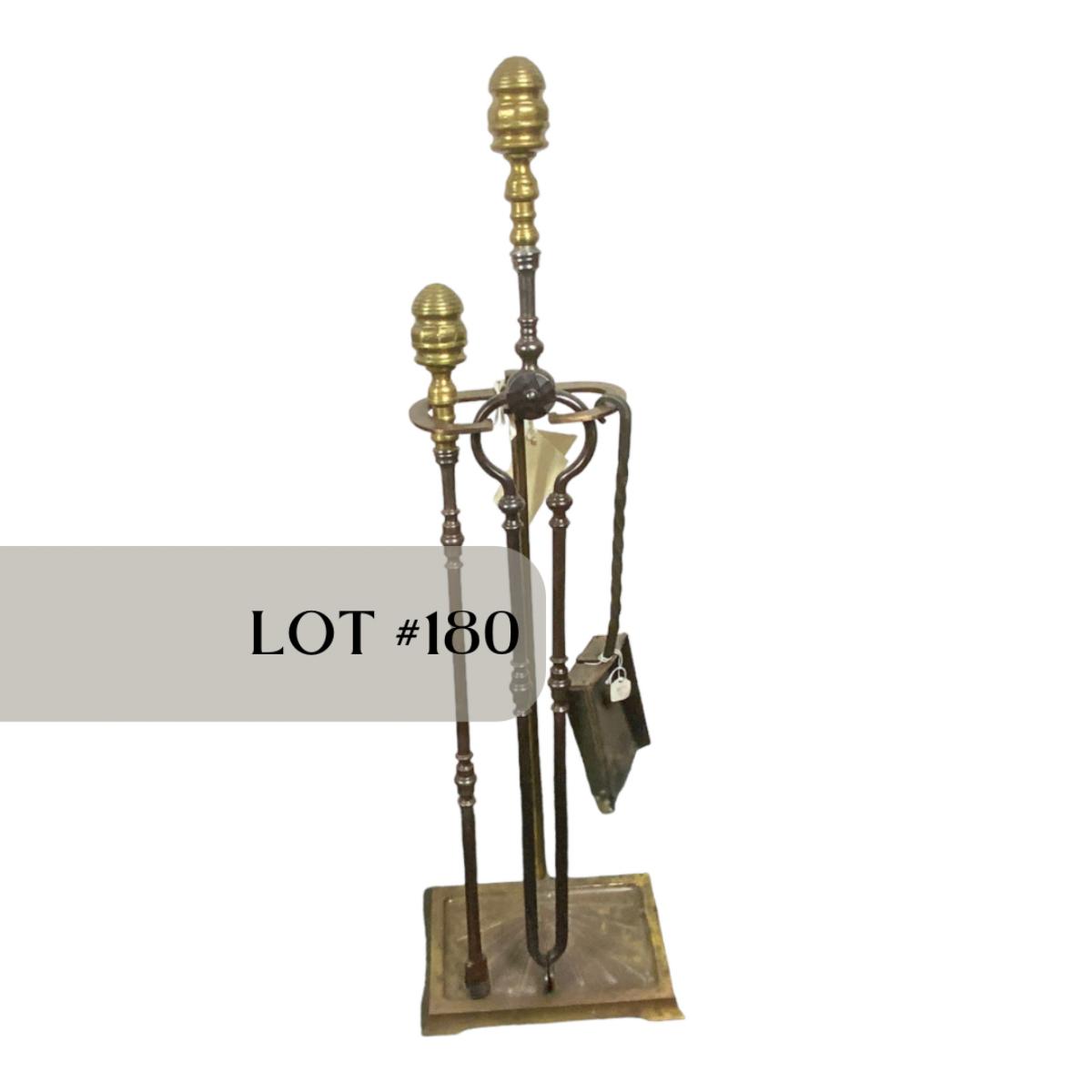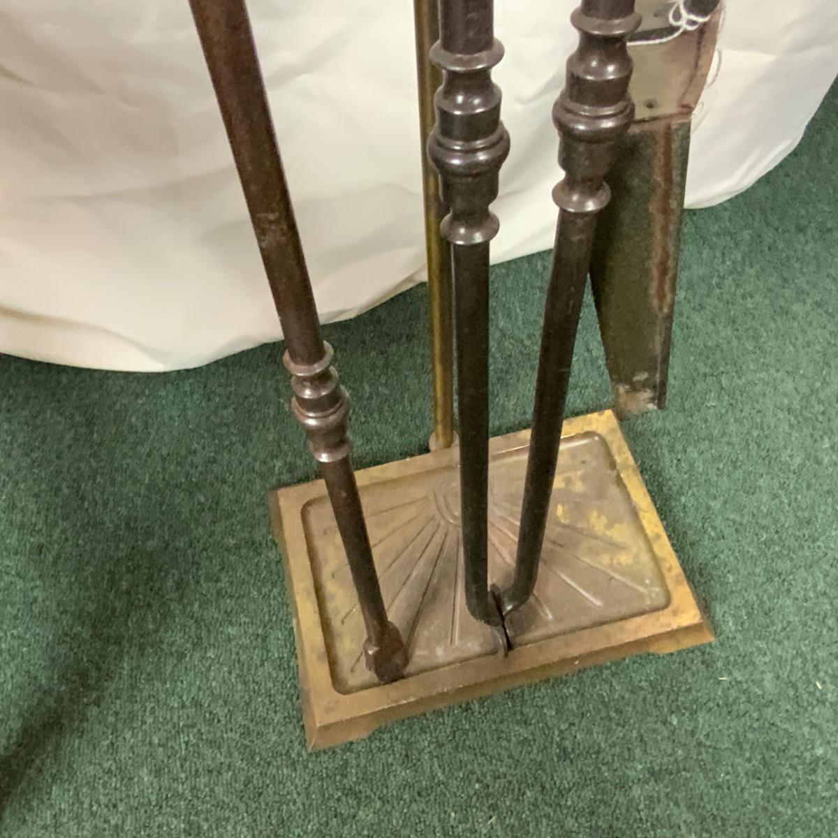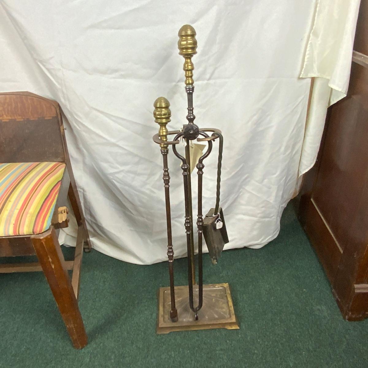 Fireplace Tool Set. Nice vintage set with caddy and tag from when it was on the sale floor at Harp Gallery! //::\\ Please see photos for details and condition. No attempt has been made to hide any imperfections. All items listed in this auction are warehouse items, and need to be cleaned. A majority of the items need restoration as well. All items are sold AS IS and WITHOUT GUARANTEE. If you are uncertain about an item, DO NOT BID. Due to the nature of this online auction in-person inspection is HIGHLY recommended. All Sales are FINAL. Pick Up Times are FIRM. Please confirm with your own schedule that you can pick up in the scheduled times listed in the Terms and Conditions. Any questions please message the auctioneer. DO NOT Contact The Harp Gallery.