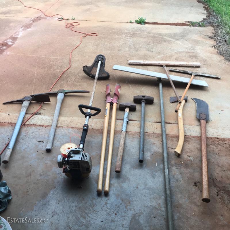 Rakes, Echo weed eater, Post hole digger, pick axes, sledge hammers. All in working condition. See photos for details. Items available for local pick up only in Columbus, NC.
