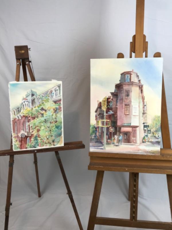 Pair of Jean Ranney Smith signed original watercolor paintings “Maryland Inn” measures 22”x16” and “Brick Church” measures 15”x11-1/2”