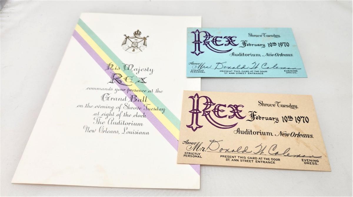 Lot #180 Rex Mardi Gras Ball Invitation with 2 Admit cards - 1970, Municipal Auditorium
