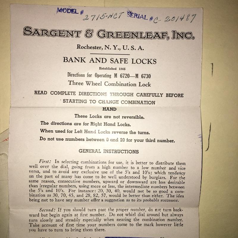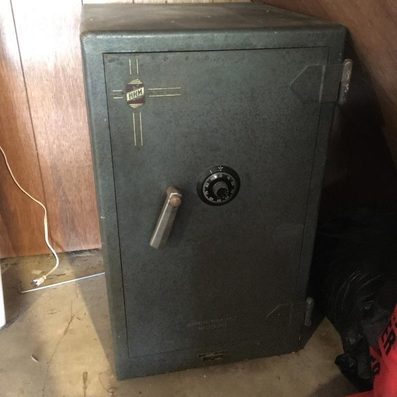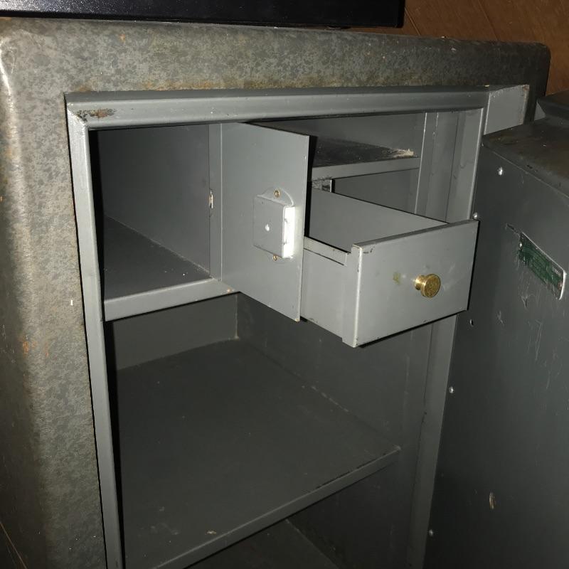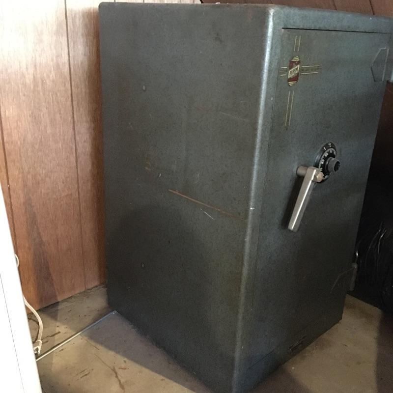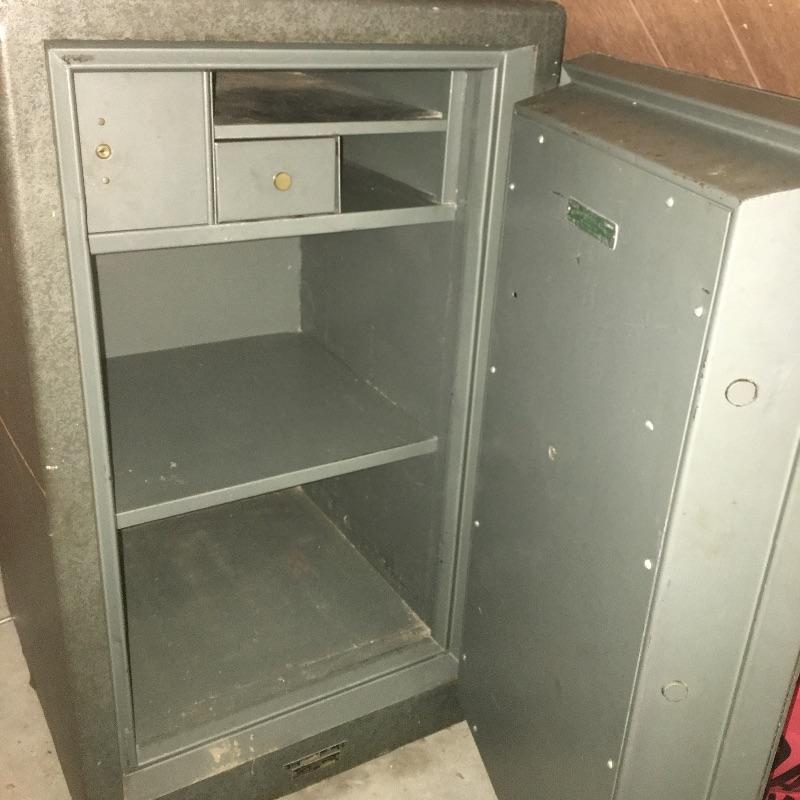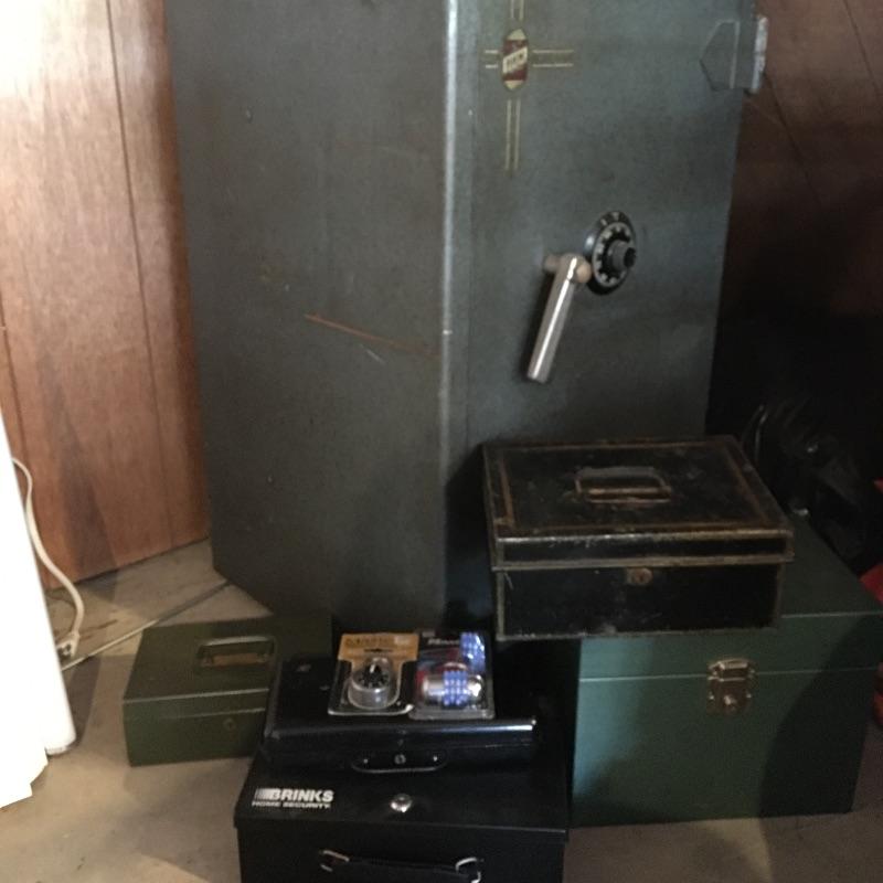 Large Sargent & Greenleaf safe. Safe has original papers with combination and instructions. Safe has lockable box inside(with key) and a drawer and shelves. Also includes five lockable metal boxes and two combination locks. All smaller boxes open but do not have keys. Bring help as the large safe is very heavy. It is located in garage with easy access to driveway. Safe measures 20” x 21” x 35”.