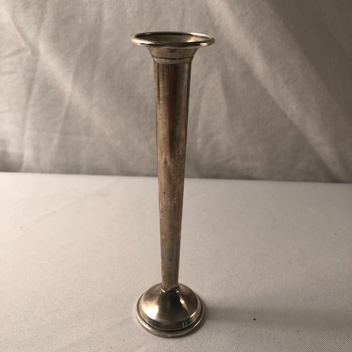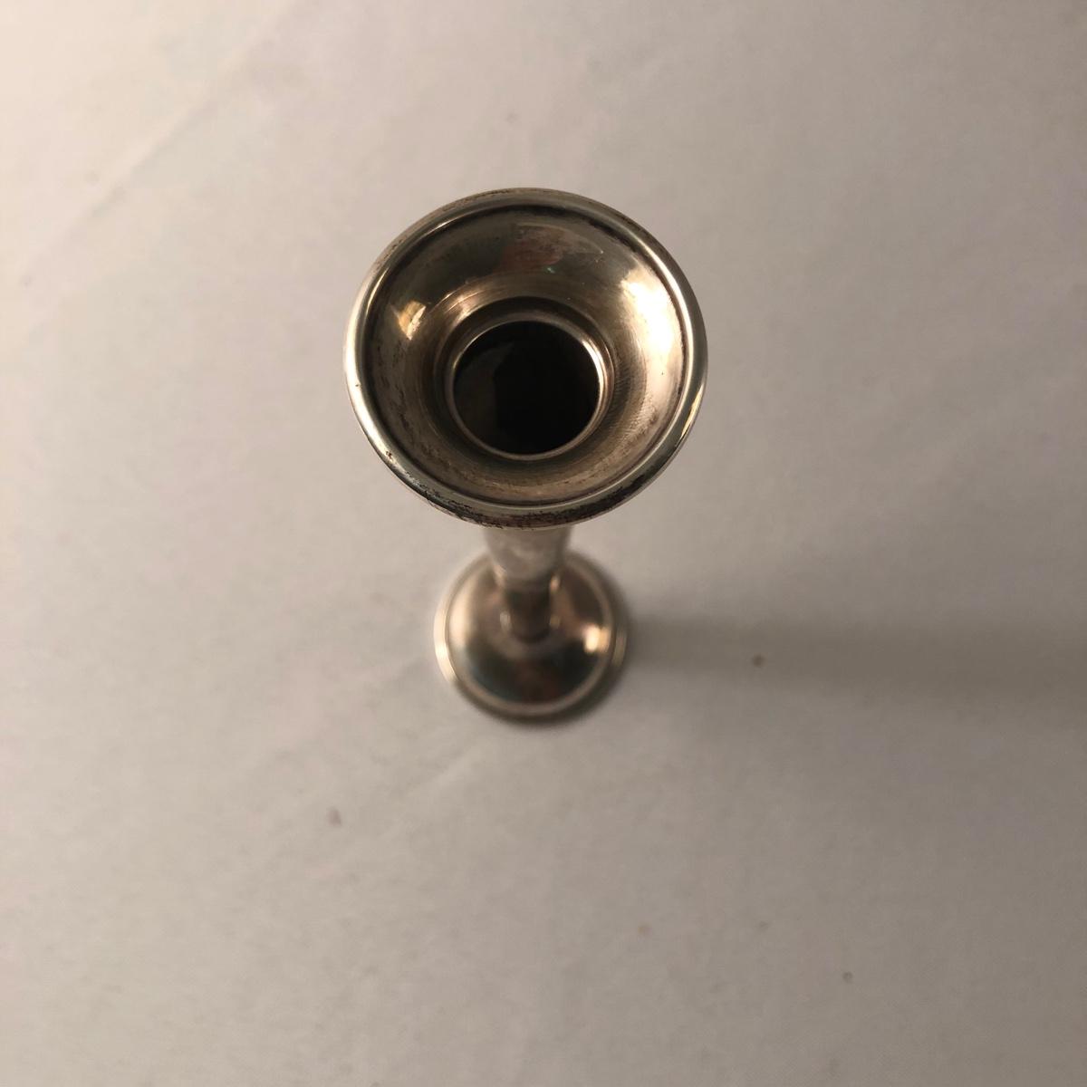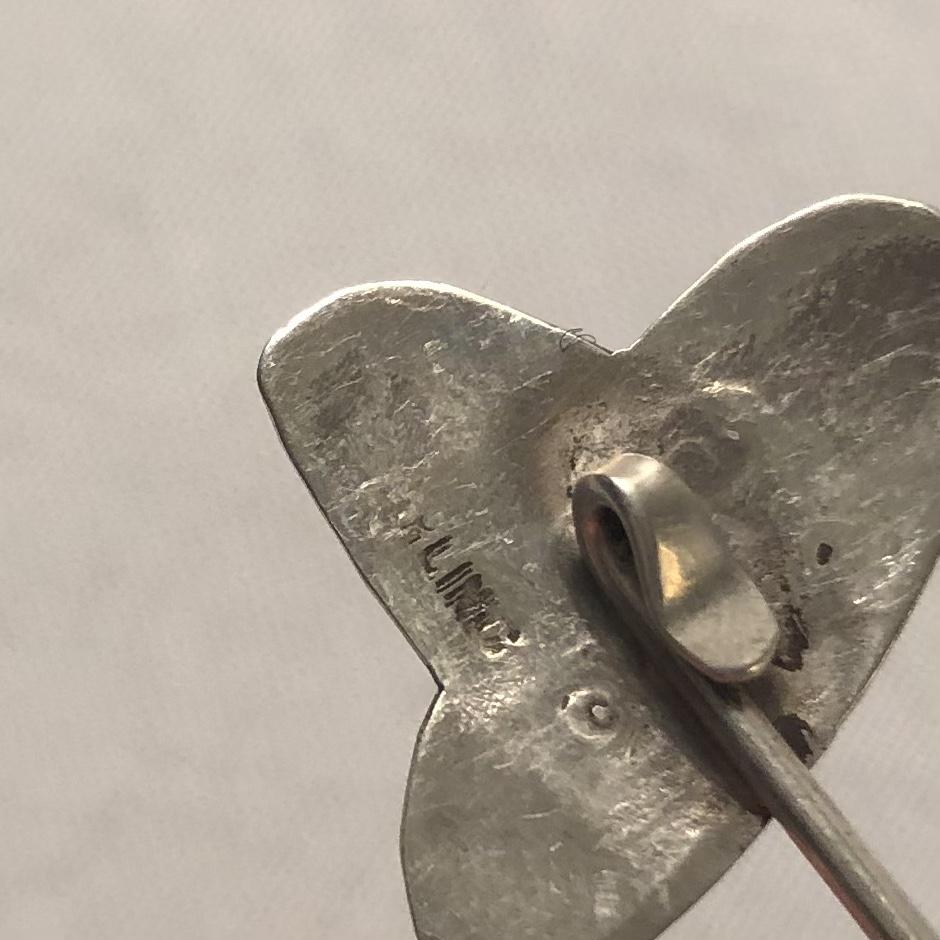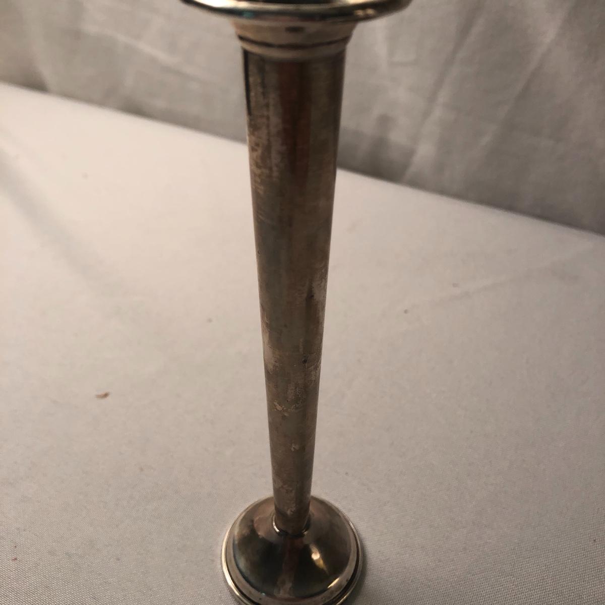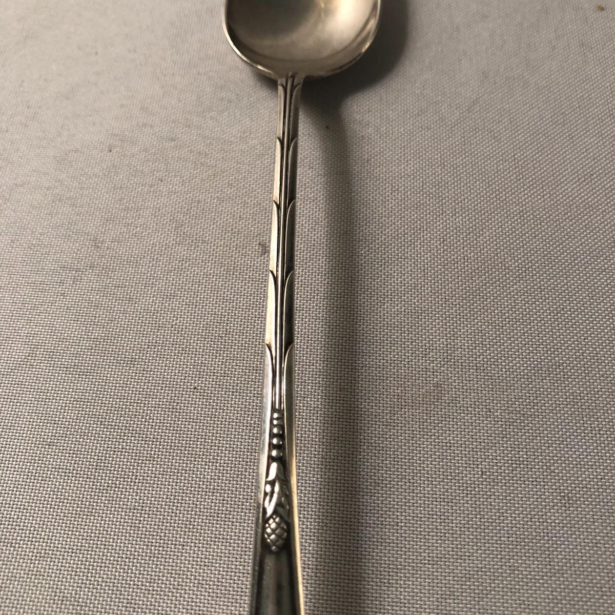 In this collection of Sterling silver, there are candlestick holders, a small teacup, an ashtray, small sampling glasses, a spoon, and appetizer forks. Two of the candle holders match and say “Home Decorations Inc., Sterling, Weighted” on the bottom and one of the holders has some denting around the center. Another pair of candlestick holders are a bit taller and say “Duchin Creation, Sterling, Weighted” on the bottom. The last candlestick holder has a bottom inscription of “Wallace Sterling, Weighted, Reinforced, 6524” and is the tallest. The small teacup says “Reed and Barton Sterling, X827” on the bottom and has the initials “B.L.H.” on one of it’s sides. Four small sampling glasses are glassware fitted into Sterling stems. They say “Sterling, EX925LHN”. The small Aztec-style ashtray has “925, I.M.P.” and measures approximately 3.5” x 3” on its underside. Last in this collection is an Heirloom Sterling, Heiress spoon and eleven small appetizer forks. Each fork has flattened Sterling with different imagery on their ends.