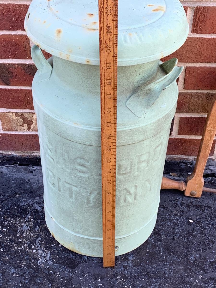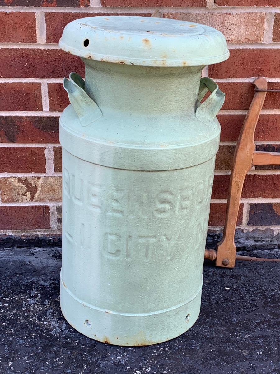 Lot 180R: Vintage Milk Can, Insulators, Pulleys, Hand  Saw & More