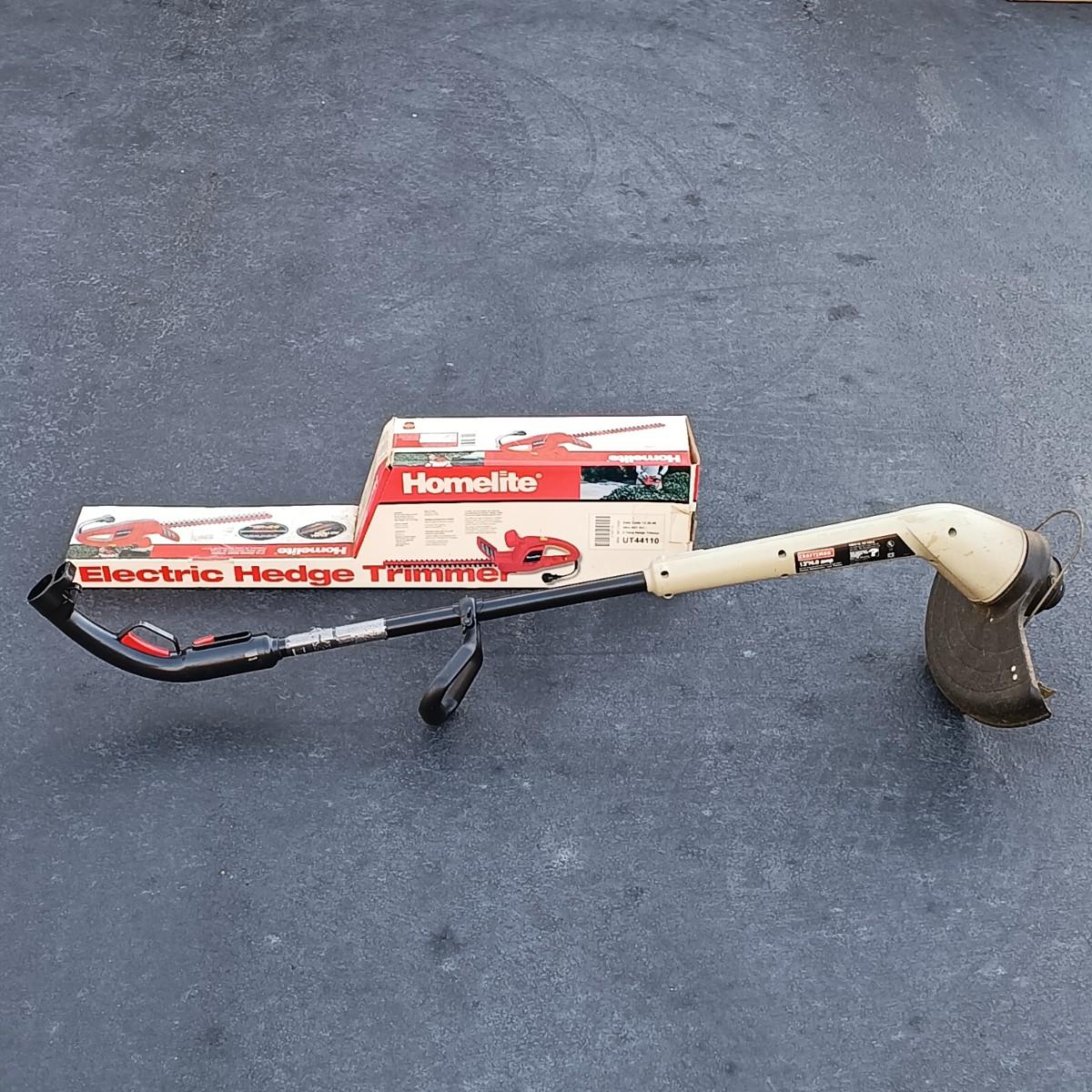 LOT 181: Homelite UT44110 2.7 amp Hedge Trimmer and Craftsman 13" 4.0 amp Electric Weedwacker Line Trimmer 358.745310