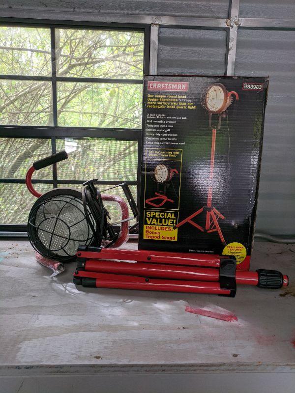 This lot has two halogen lights. It has the light, the stand, and a tripod. See photos of the box for more details