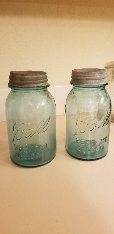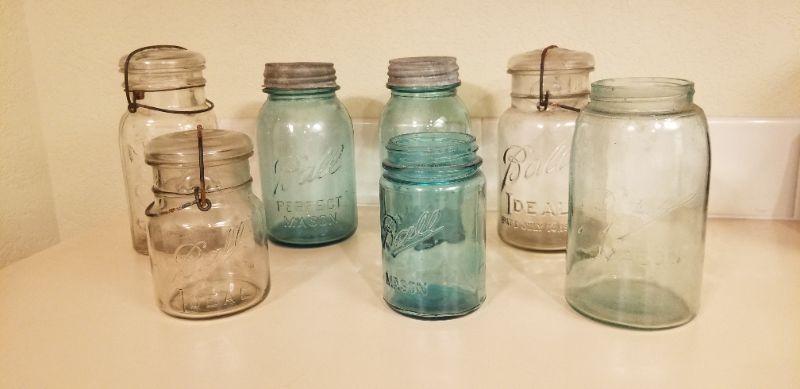 Lot #181: Vintage Group of (7) Colored and Clear Ball & Atlas Can