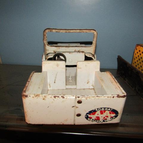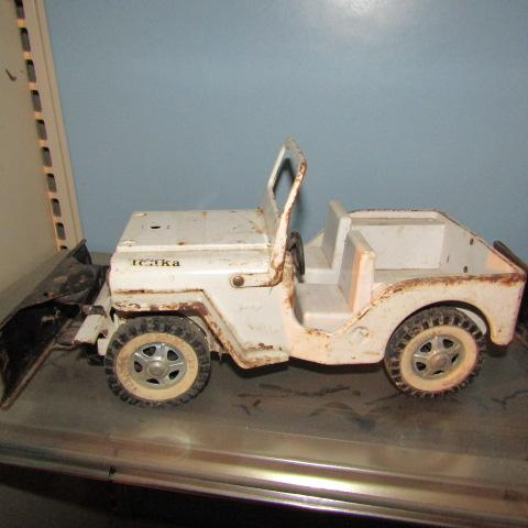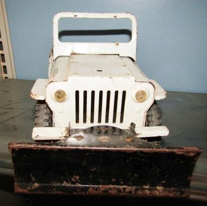 JEEP HAS A PLOW ON THE FRONT AND THE WINDSHIELD LAYS DOWN. IT'S IN GOOD-FAIR SHAPE