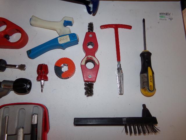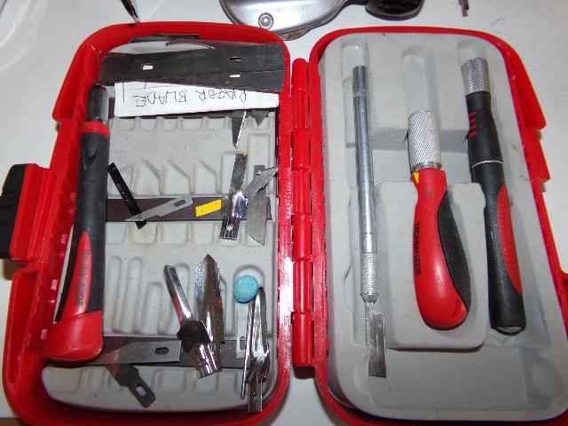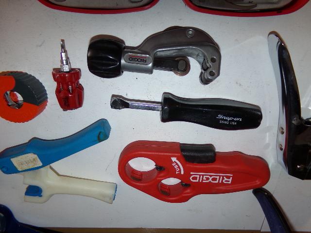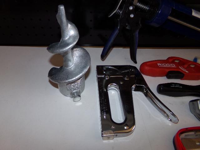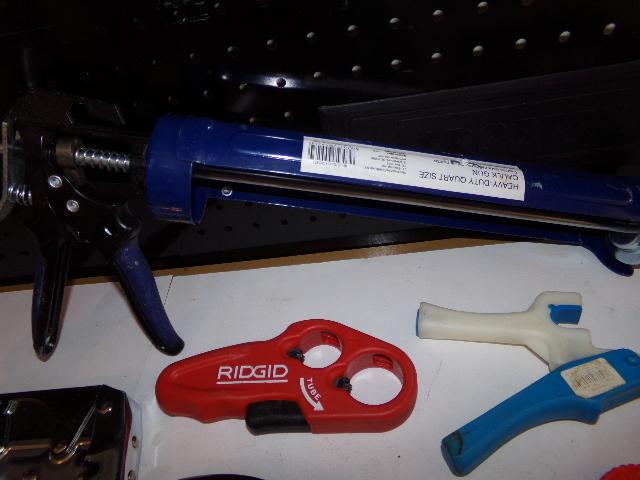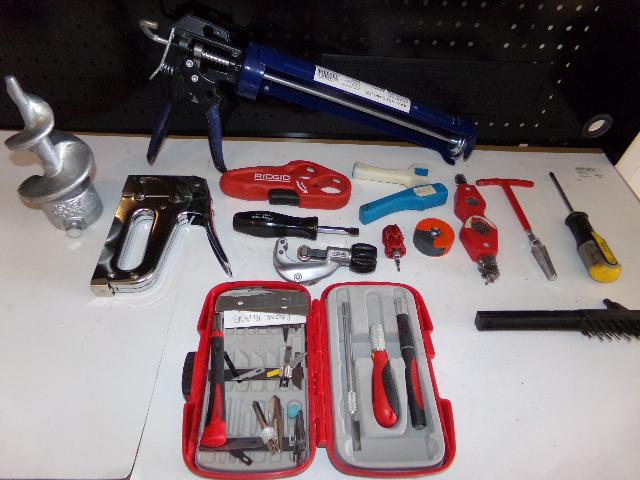 CAULK GUN, STAPLER, WIRE BRUSH, EXACTO BLADES/OLAF KNIFE KIT, PIPE CUTTER, SNAP ON TOOL