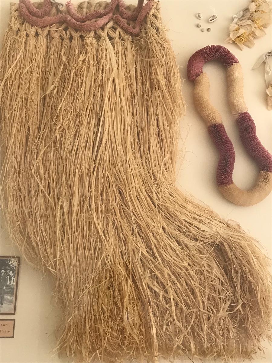 1940's Grass skirt with leas and other memorabilia make up this Hawiaiin collage. All preserved in a custom plexi glass box. 40.5x4.5x34. Must remove from wall on second floor. Please see all pictures for content of the lot, condition of the lot, and measurements if taken. Pictures are the best representation of the items listed and items are untested unless indicated in description. Thank you for looking and have fun bidding!