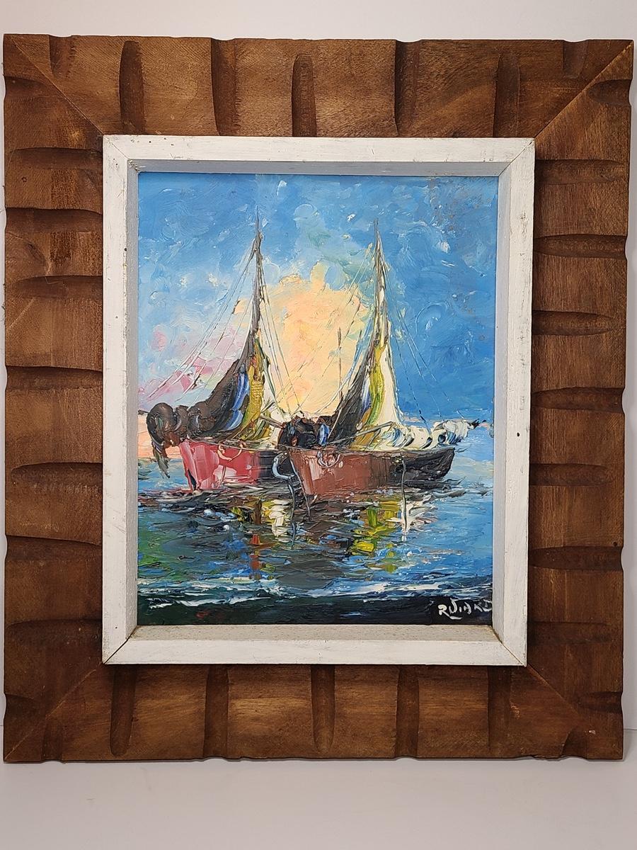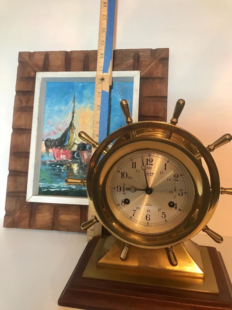 Vintage Salem Navigator Clock and painting. The clock is untested. Please see all pictures as they are the best representation of the items. The pictures show condition, measurements if taken, and what is included in the lot. Due to the large amount that we photograph and the time frame, we are not always able to take measurements. All items unless noted, are pre-owned and have been used. If you purchased furniture, you must bring help. We do not allow one person to carry large furniture out on their own. Bring help, tools and a truck for the safety of our client’s homes, and your personal safety. Company policy. Thank you.