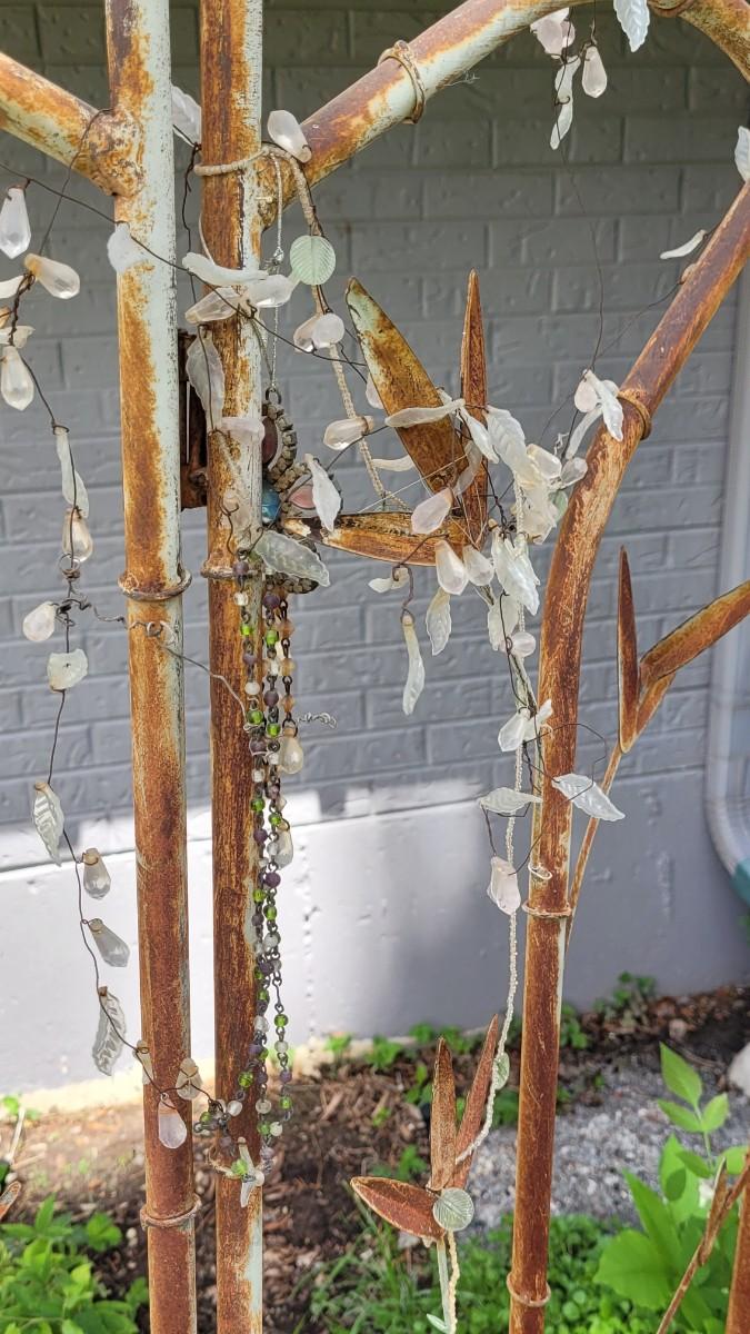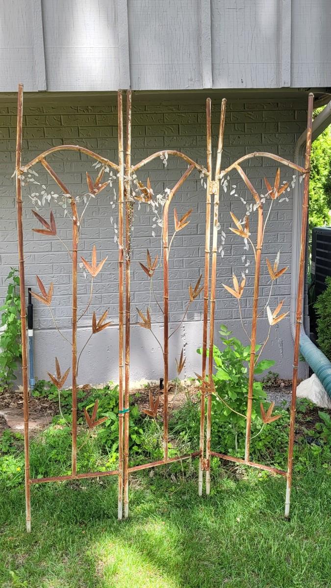 Currently decorated with beads but they can easily be removed. Each panel is 15" long. Sturdy trellis.
