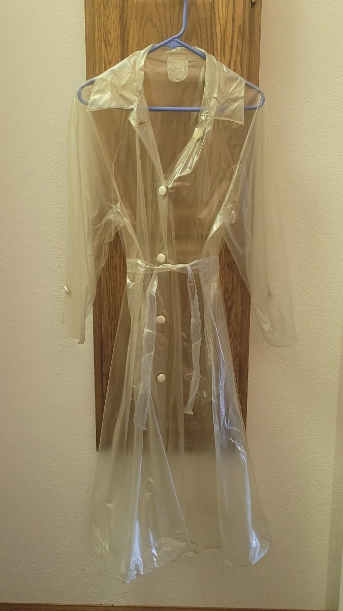 Lot 181: Vintage Clear Rain Trench Coat with the Original Belt and Clear Scarf