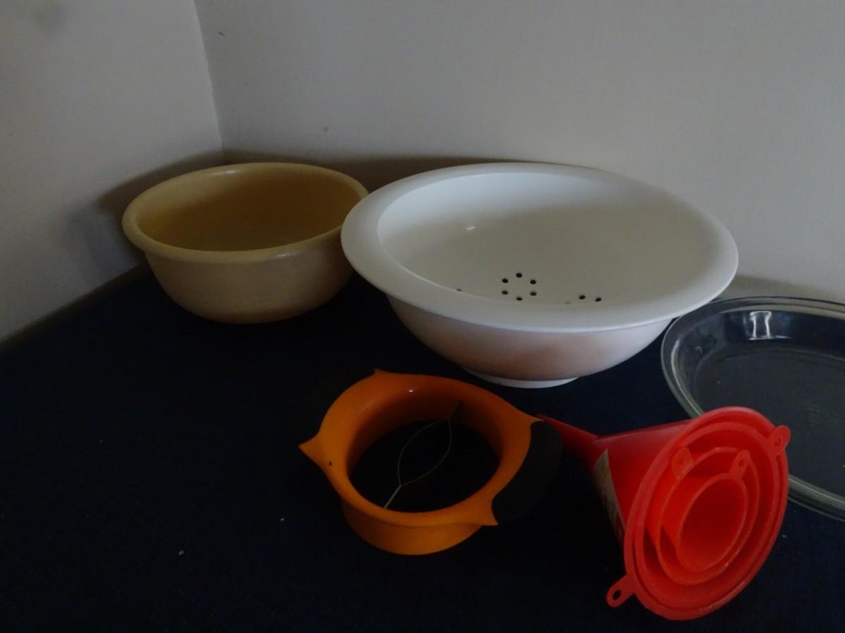 LOT 181. PYREX PIE PLATES AND KITCHEN ITEMS