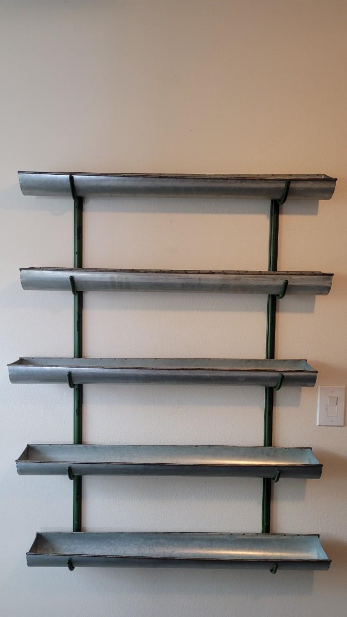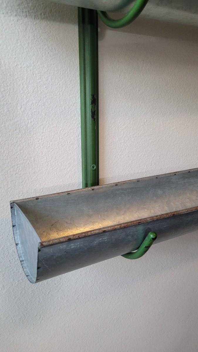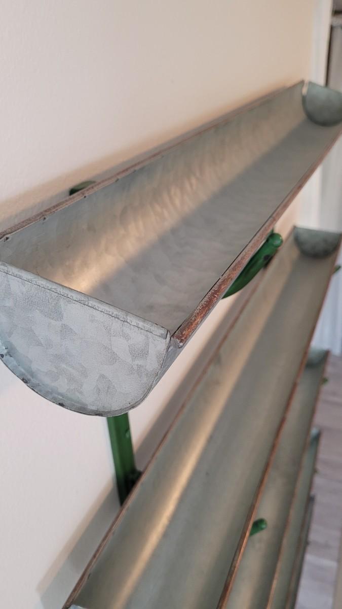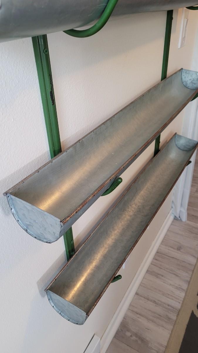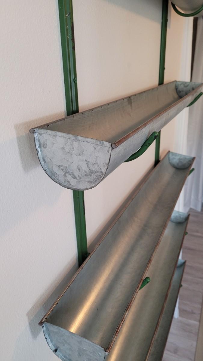 Lot 181: Metal Gutter Style and Green Metal Hooks Shelf