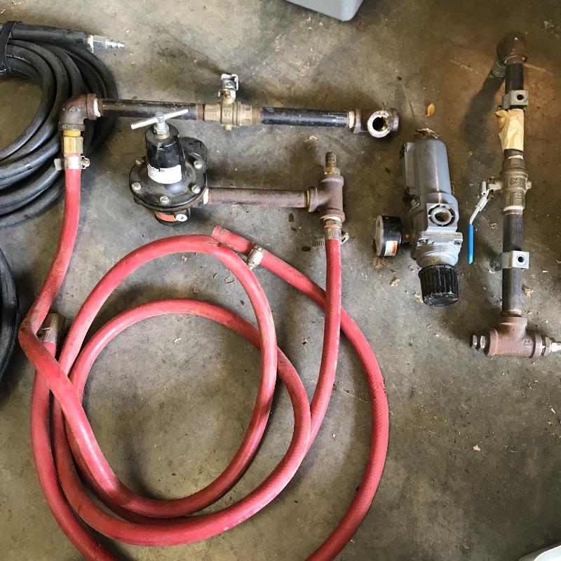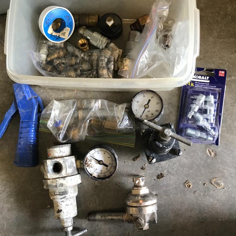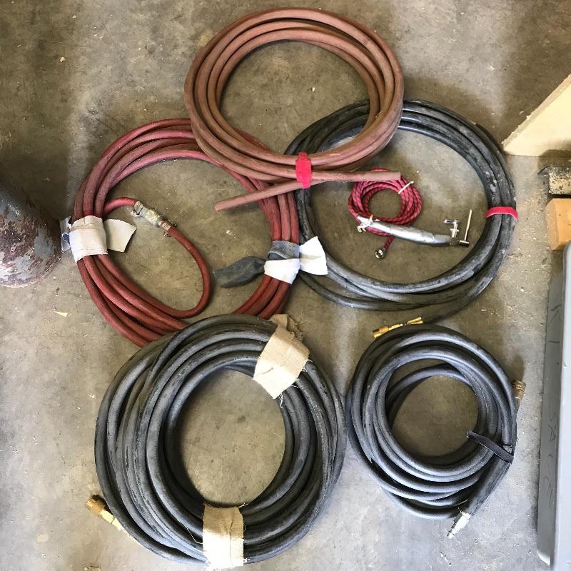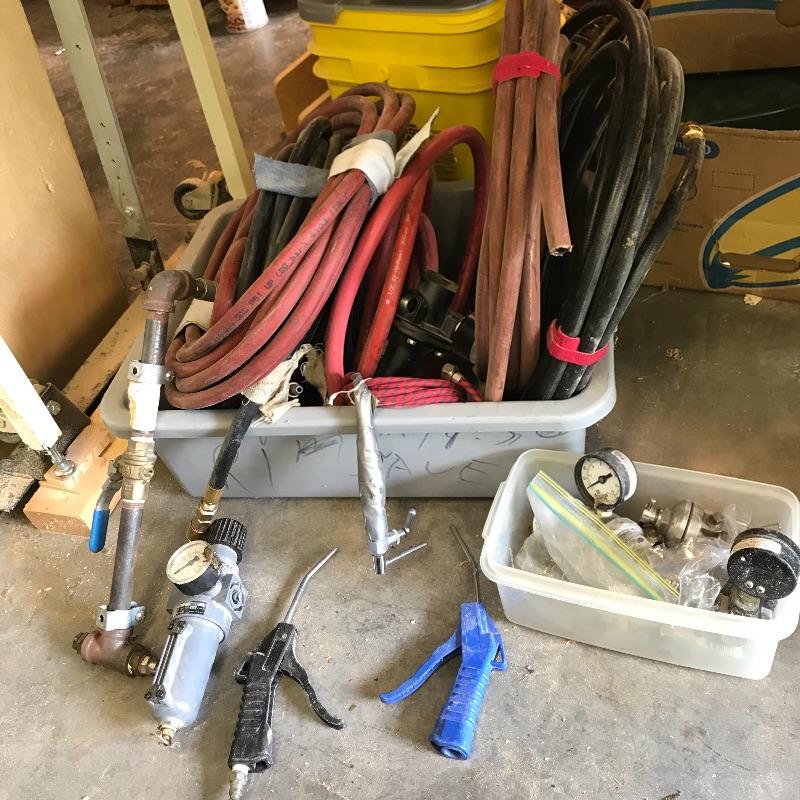 Large lot to get your air compressor going! Rubber and nylon air hoses, gauges, gun nozzles and more including hardware. Refer to lot 174 if you’re in the market for an air compressor. See photos. No shipping.