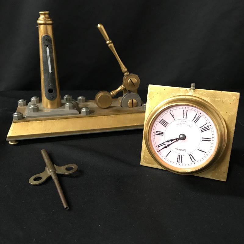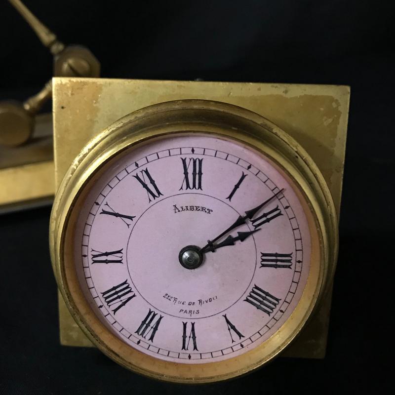 Pieces of an antique French brass clock. Other pieces appear to be missing. Base piece measures 8” x 3” x 6”. and face piece measures 3.5” x 3.5” x 3.5”. This lot is available for shipping or local pick up in Asheville, NC. It is heavy brass and metal.