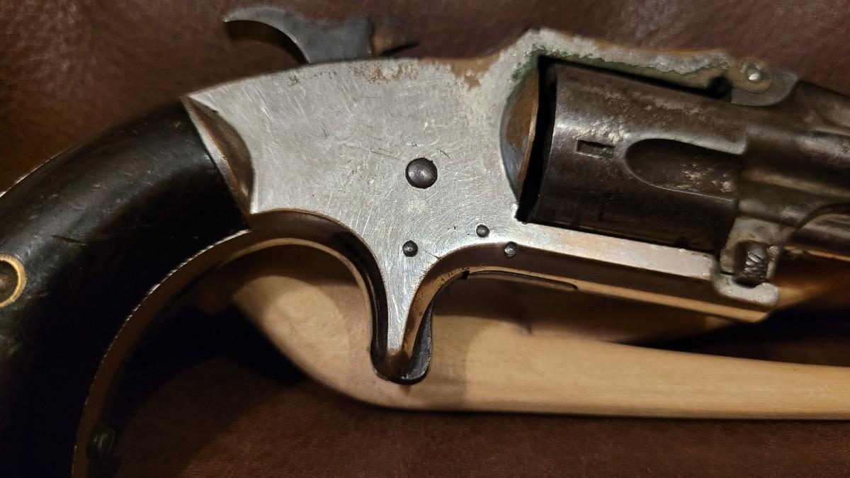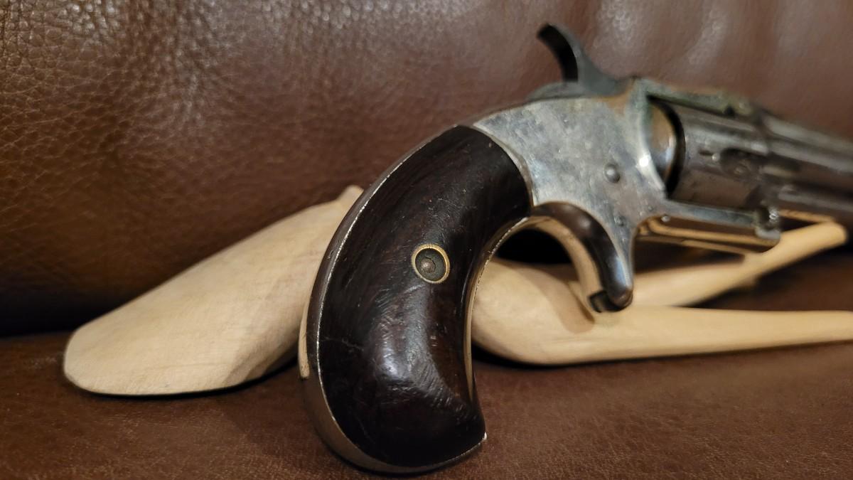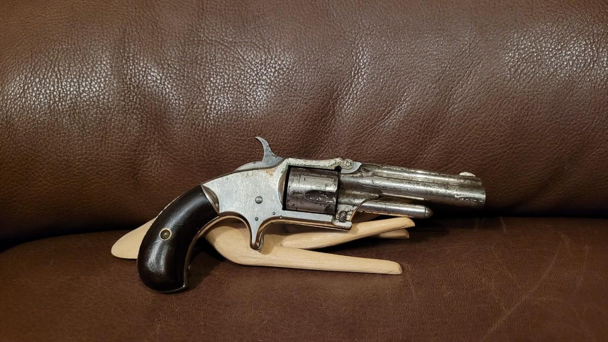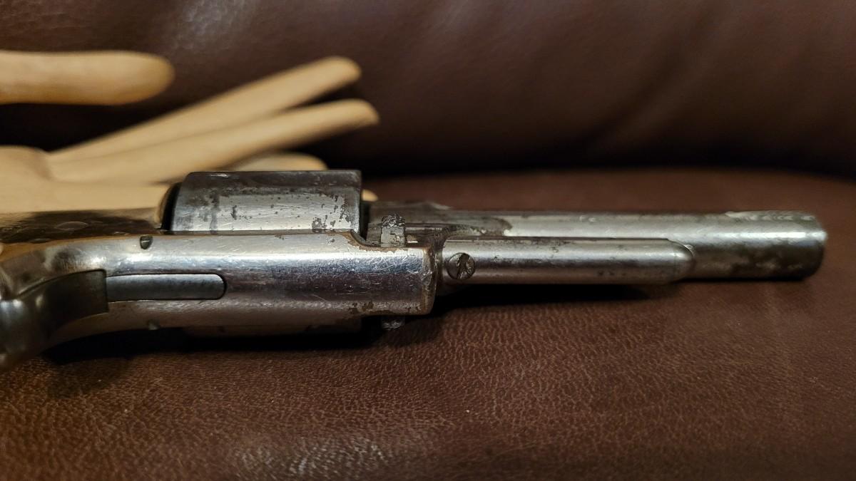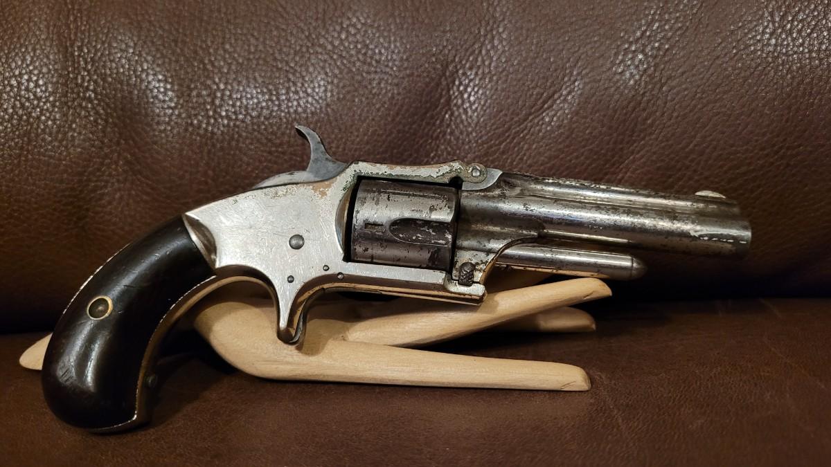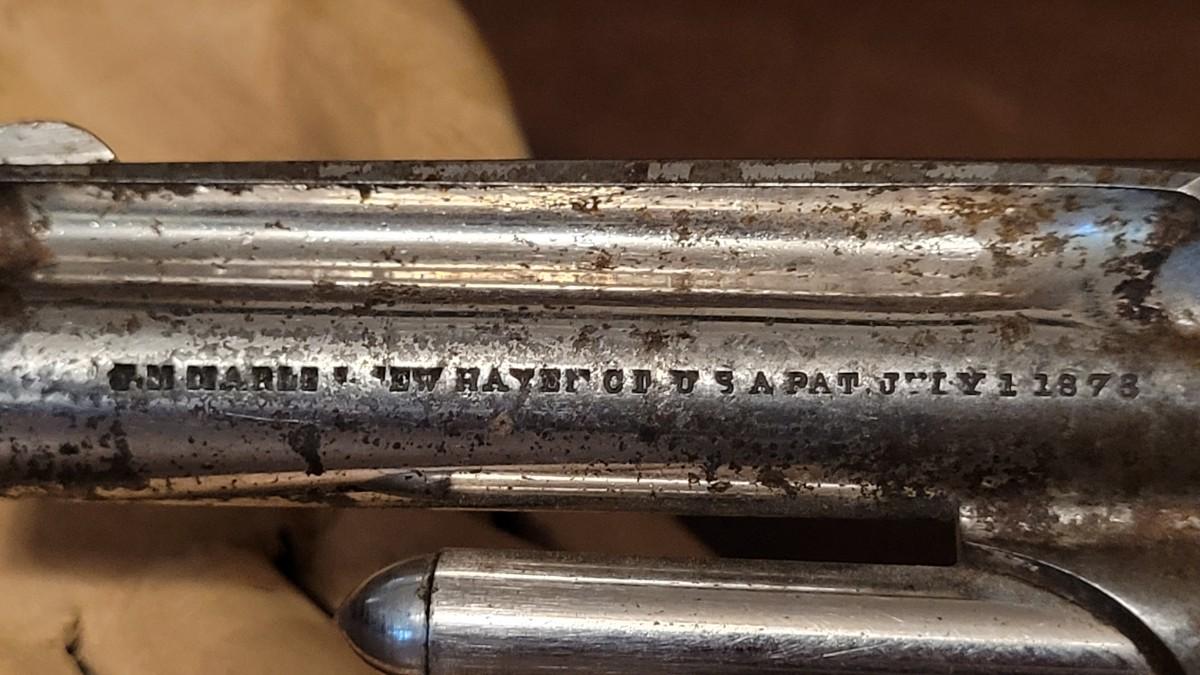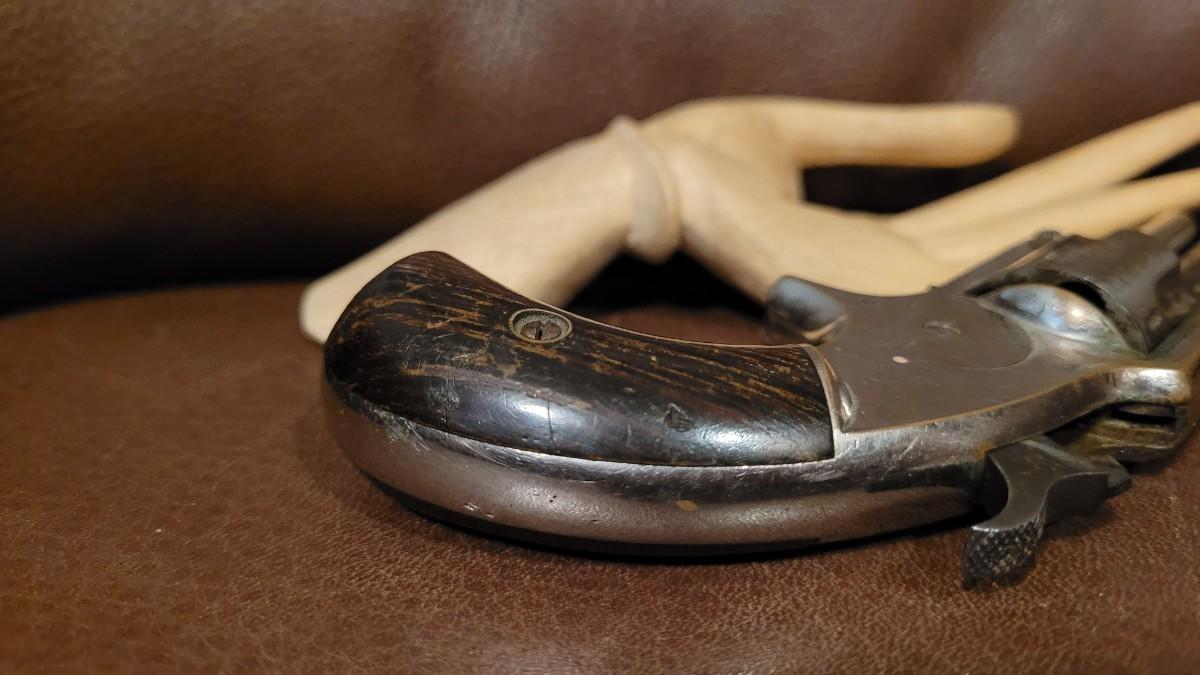 Lot 181: Antique 1878 J.W. MARLIN .30 Cal Short Rimfire Spur Trigger Bird's Eye Butt Revolver