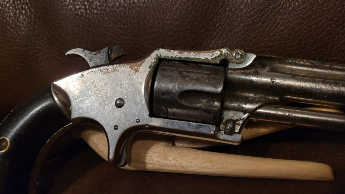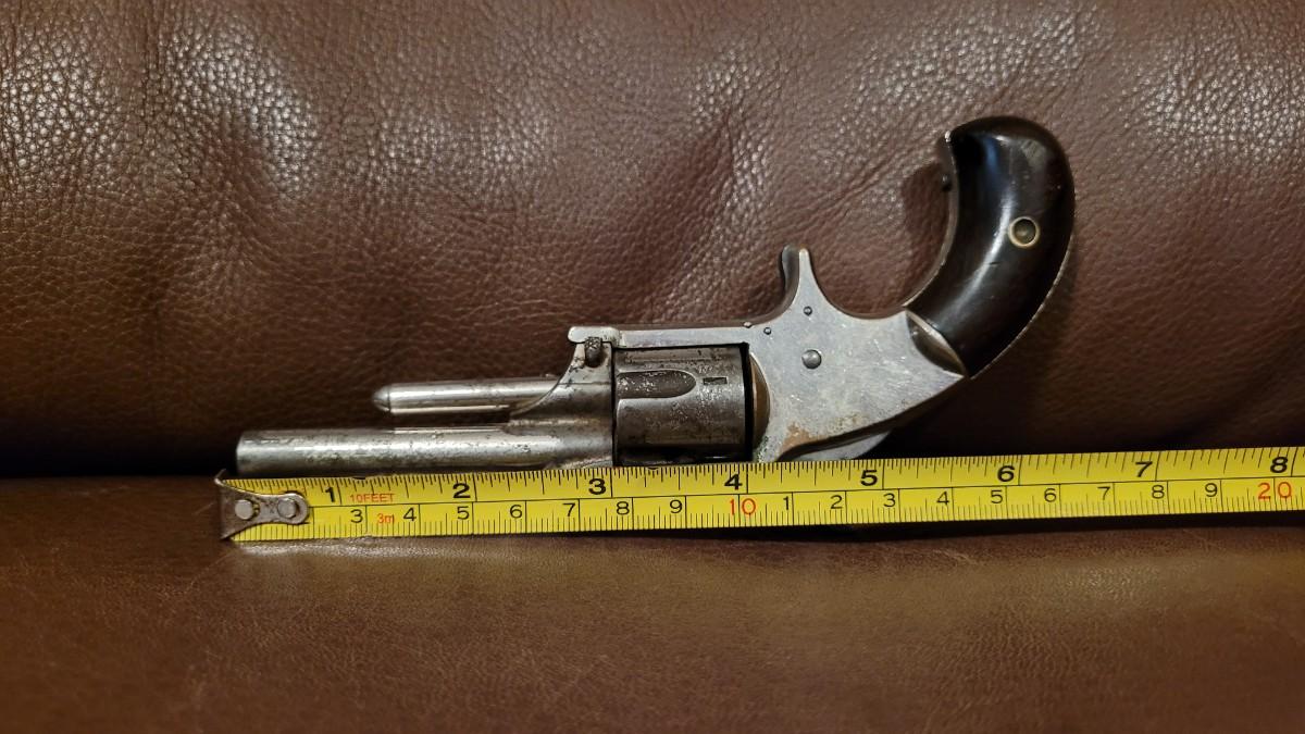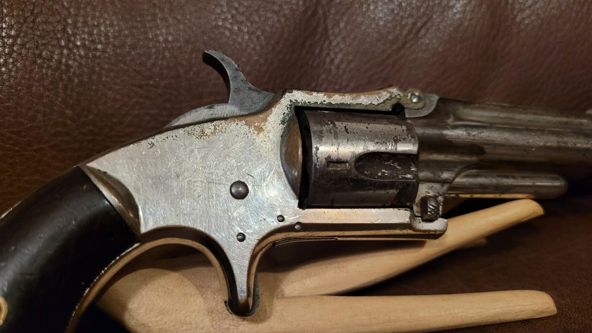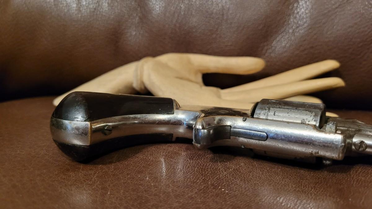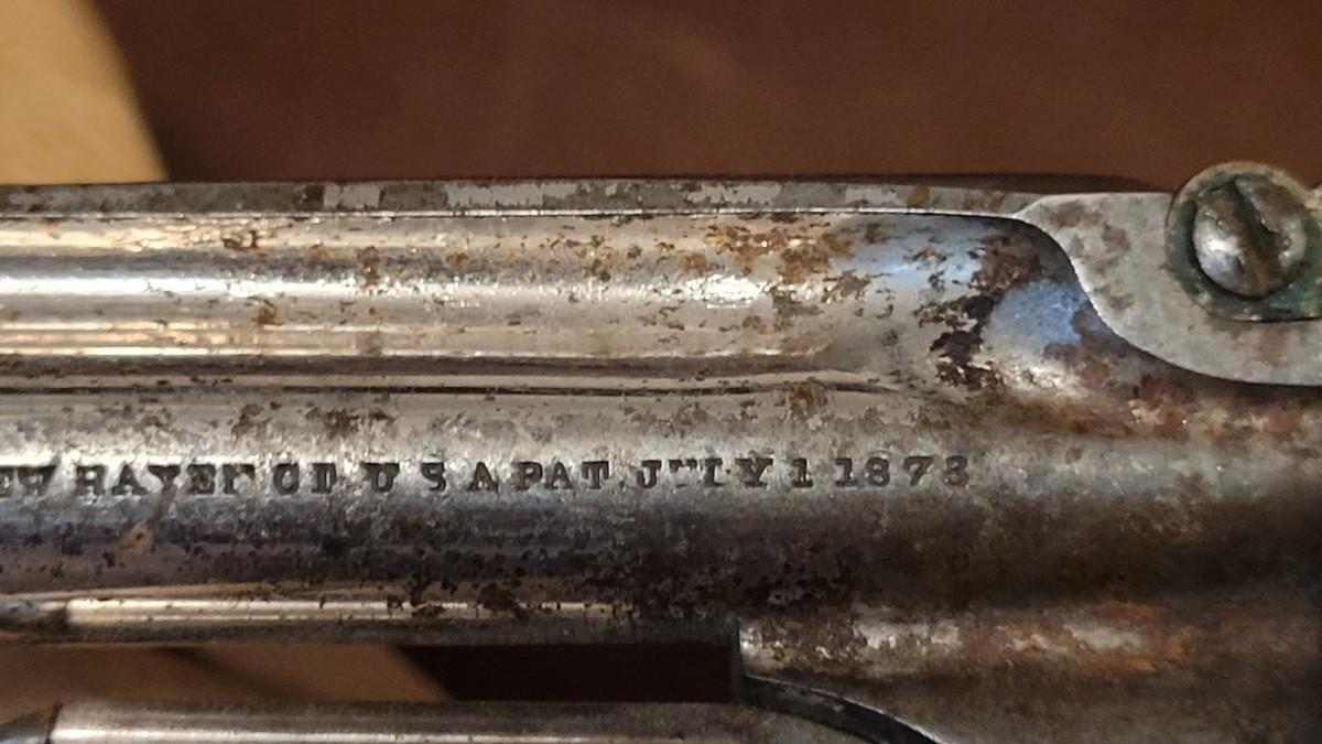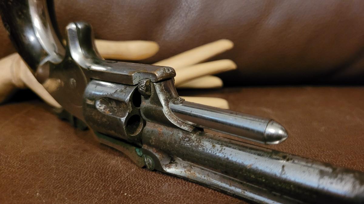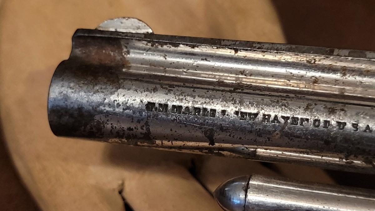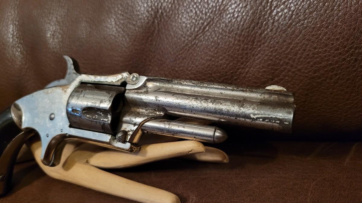 Lot 181: Antique 1878 J.W. MARLIN .30 Cal Short Rimfire Spur Trigger Bird's Eye Butt Revolver