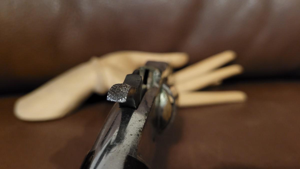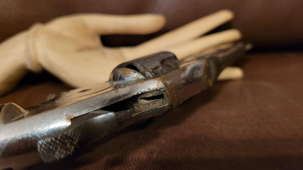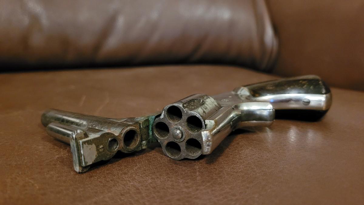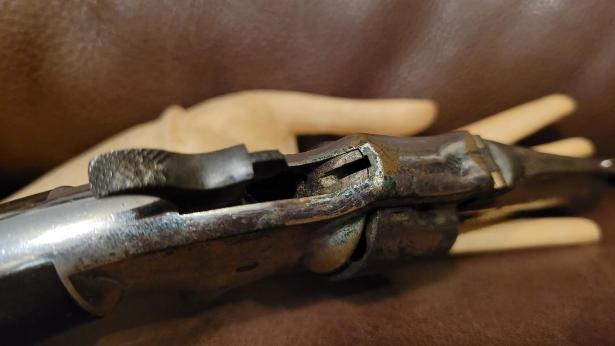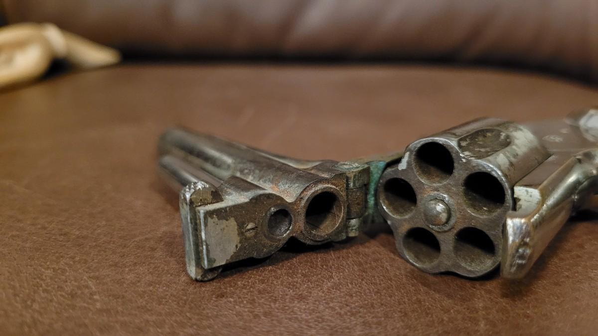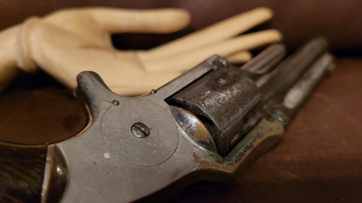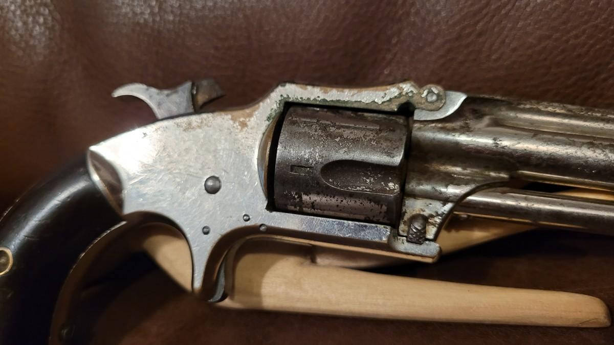 Lot 181: Antique 1878 J.W. MARLIN .30 Cal Short Rimfire Spur Trigger Bird's Eye Butt Revolver