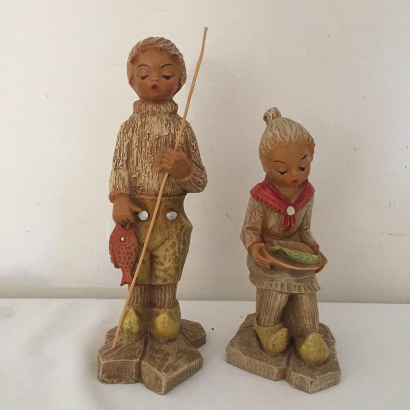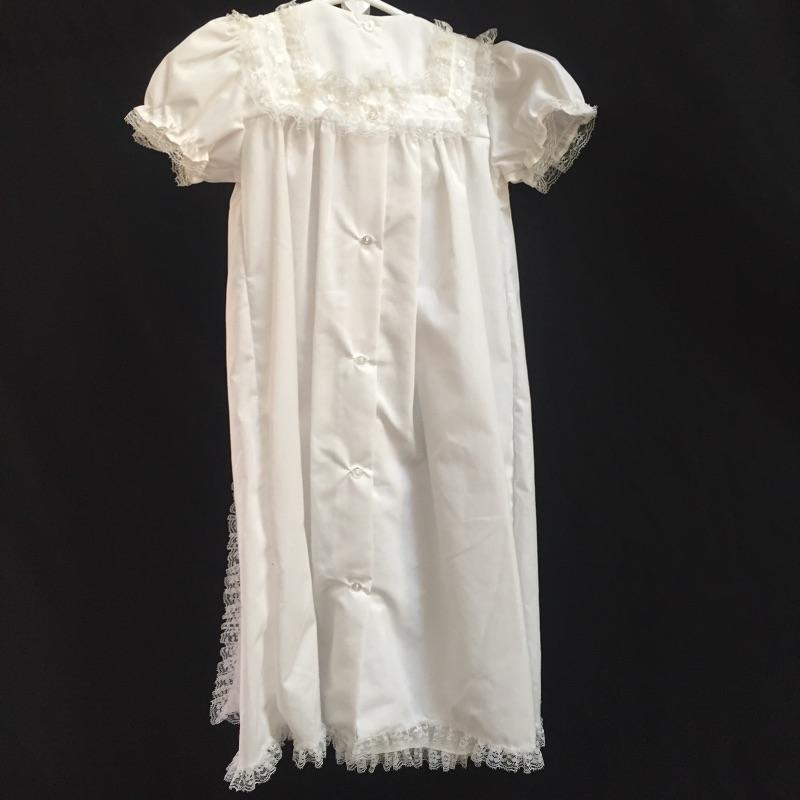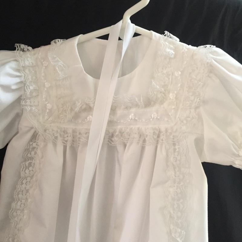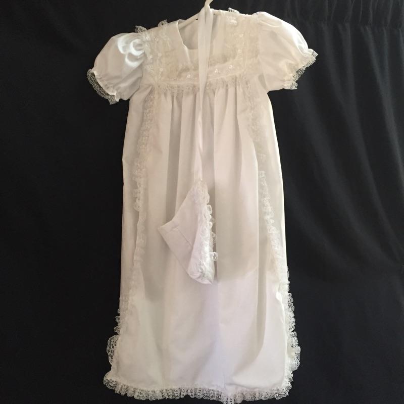Delightful baptismal suit and gown with a pair of Copy-Verb boy and girl figurines.