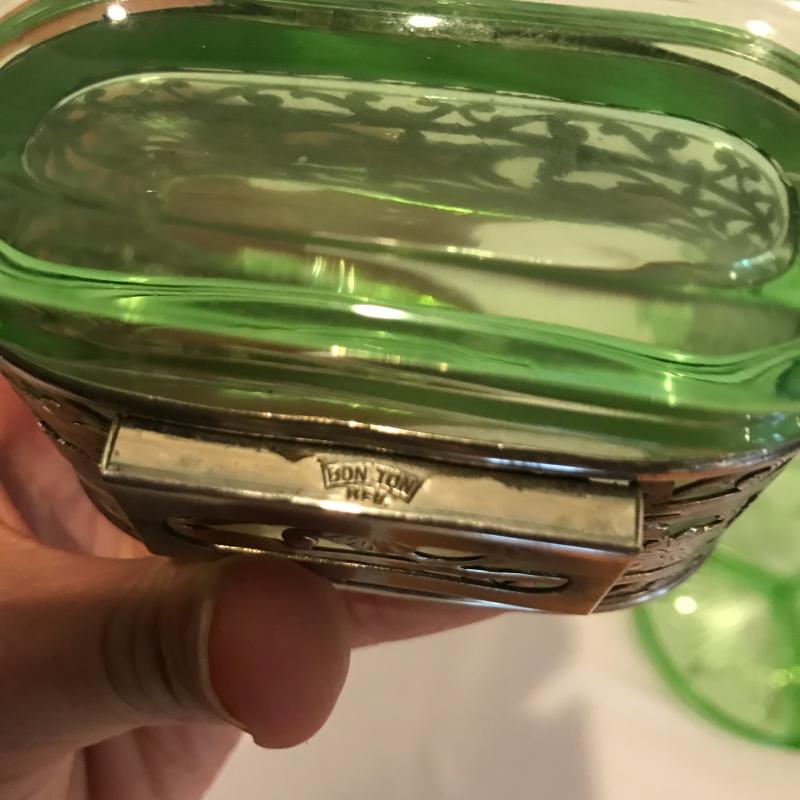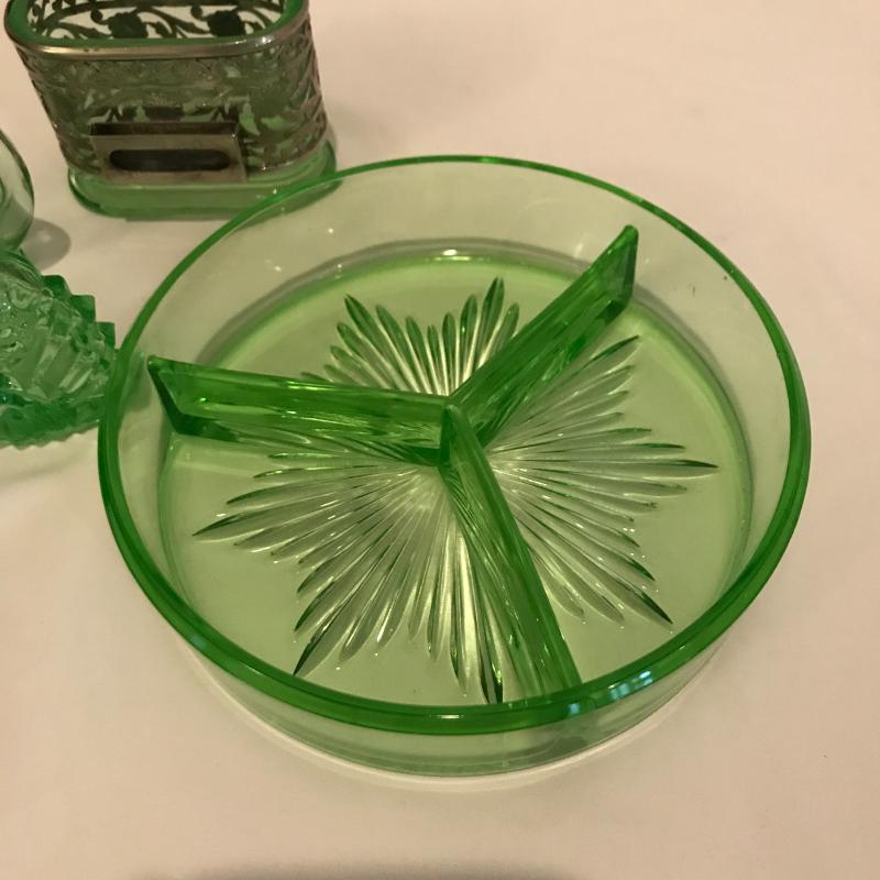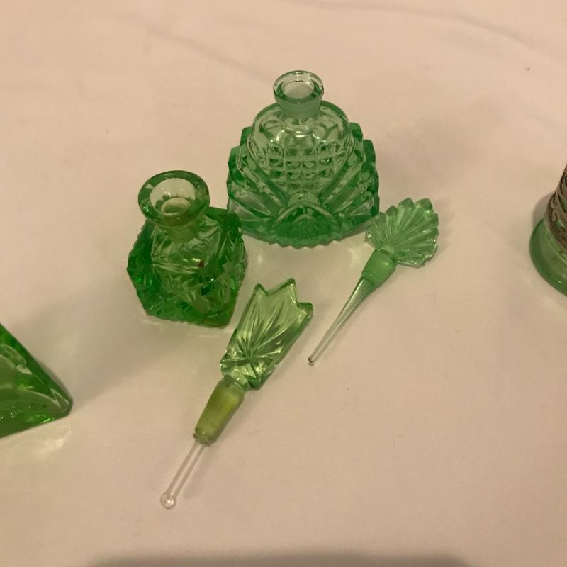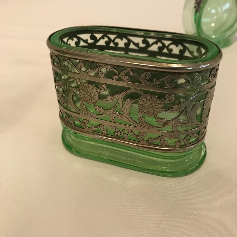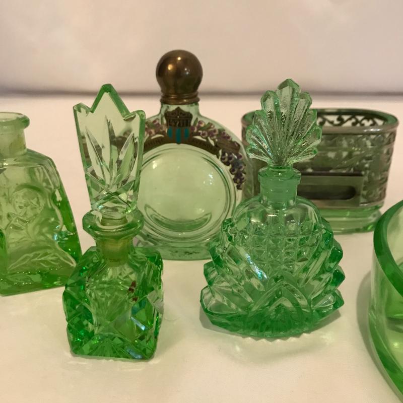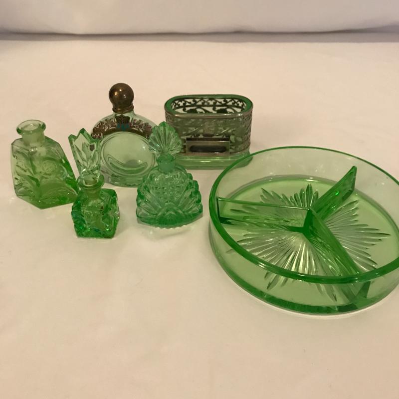 Lot 181 - Green Glass Vanity Items