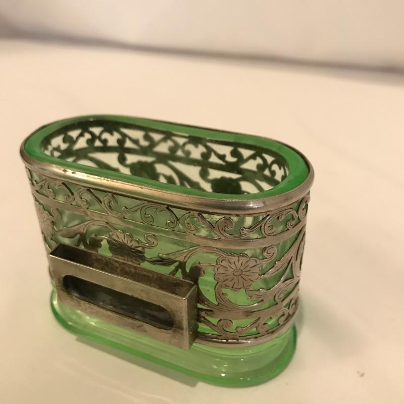 Perfume bottles, dish and glass match holder with silver. Tallest bottle is 4.5”tall. Dish is 6.5”diameter shipping or local pick up in Asheville