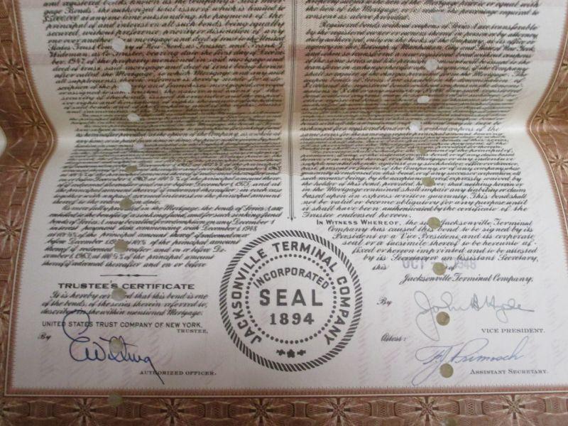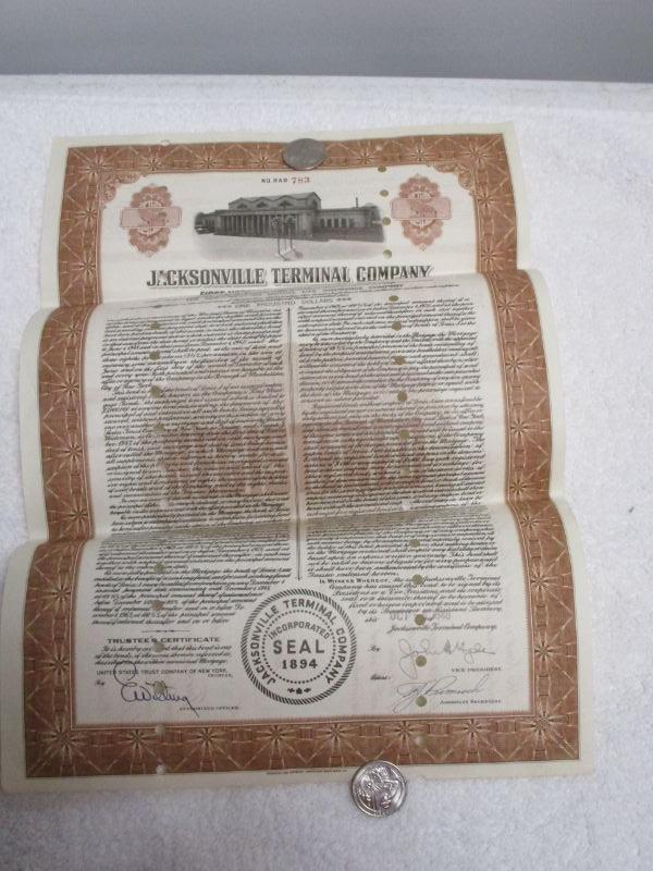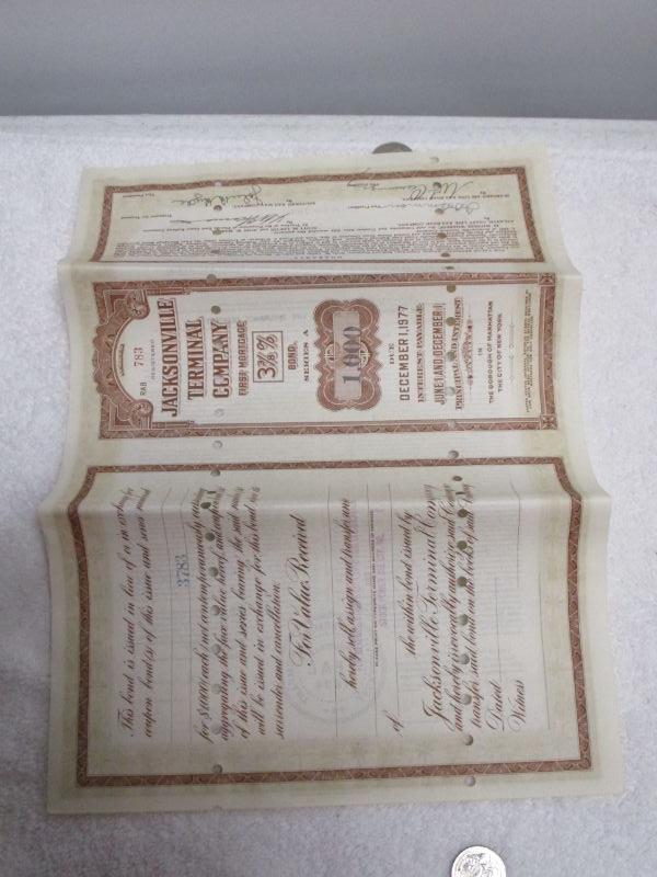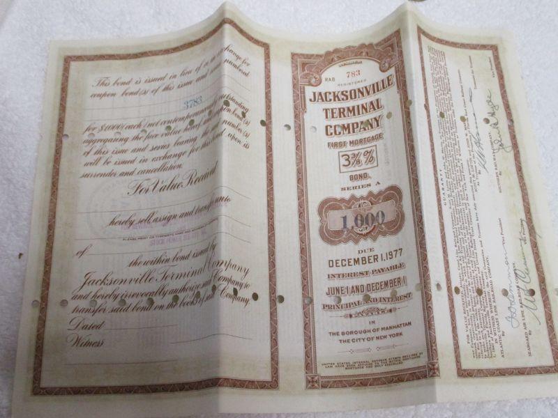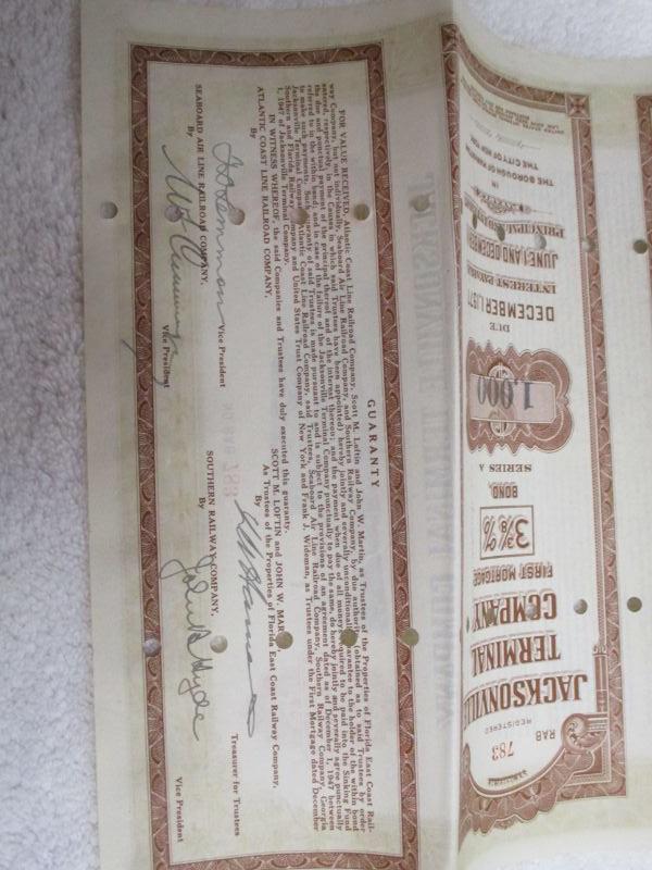 Lot 181 - Jacksonville Terminal Company 1948 Florida $1000 CSX Bond Certificate